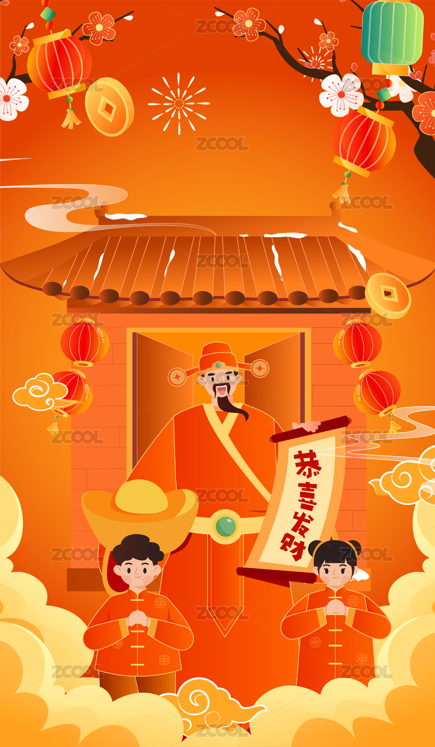财神拜年插画
