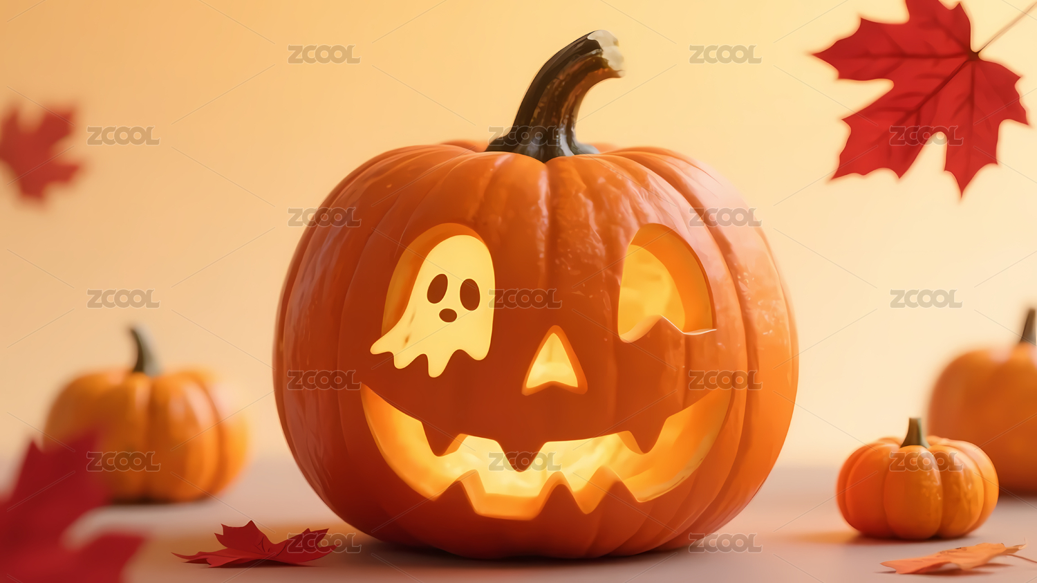 南瓜灯黄背景枫叶南瓜