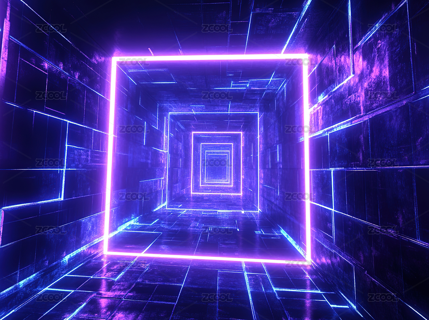 未来感霓虹方形隧道