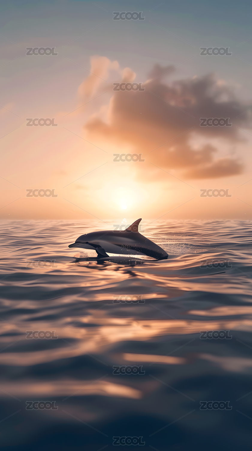 海面,海豚,海洋,生物,鱼,插画,三维,竖幅,竖图,手机端