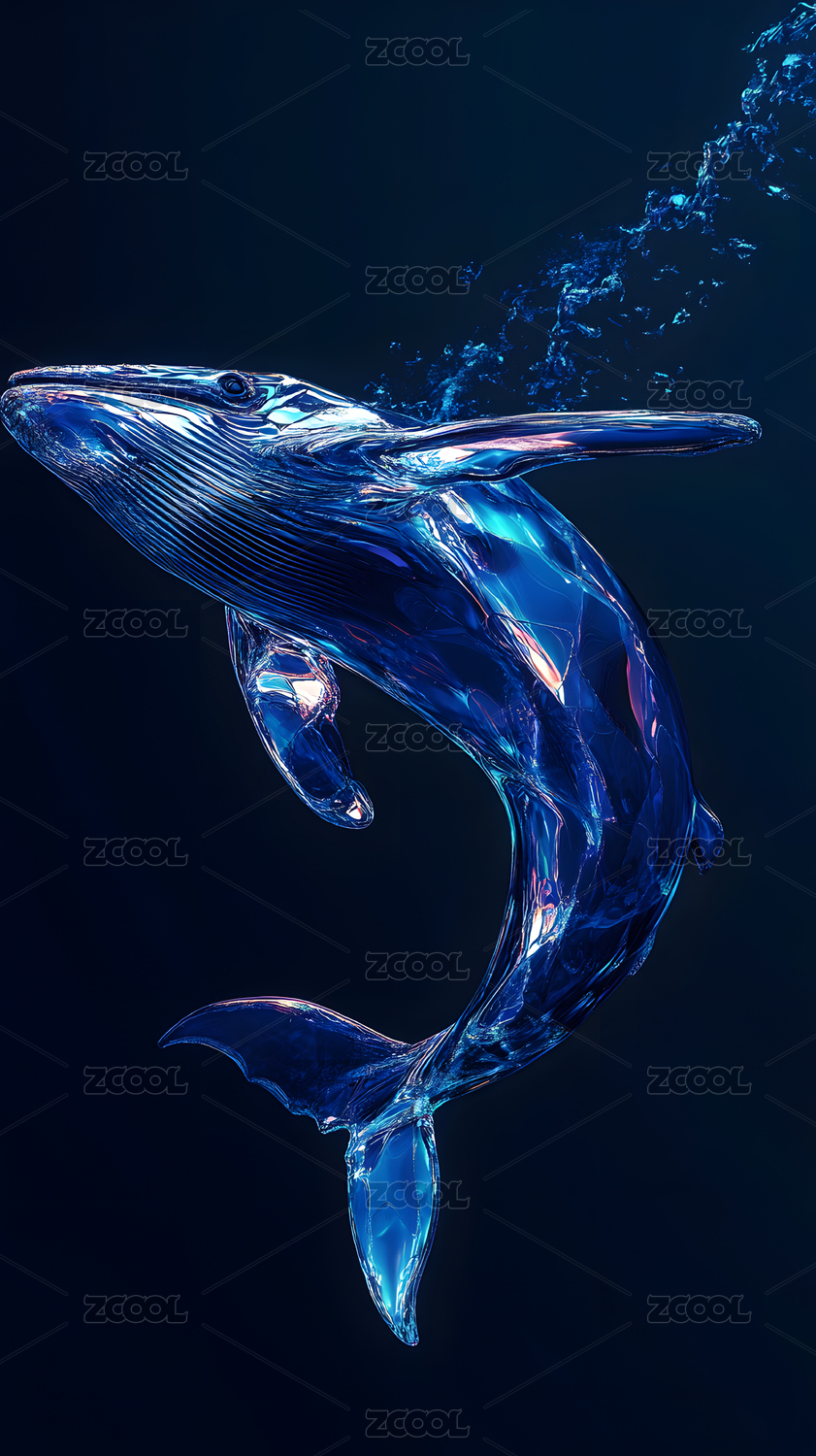 跃出海面的透明冰雪海豚