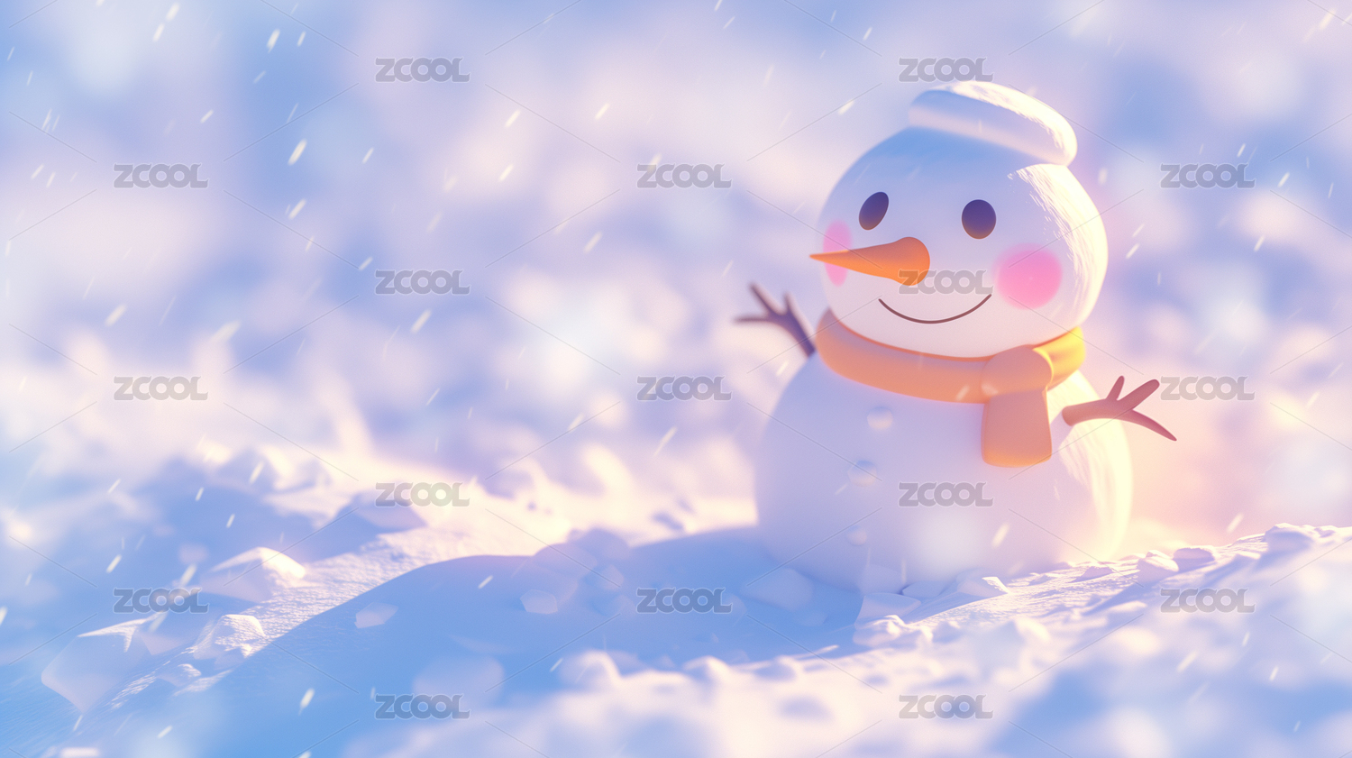 寒冷冬季阳光下的雪人3D立体卡通插画