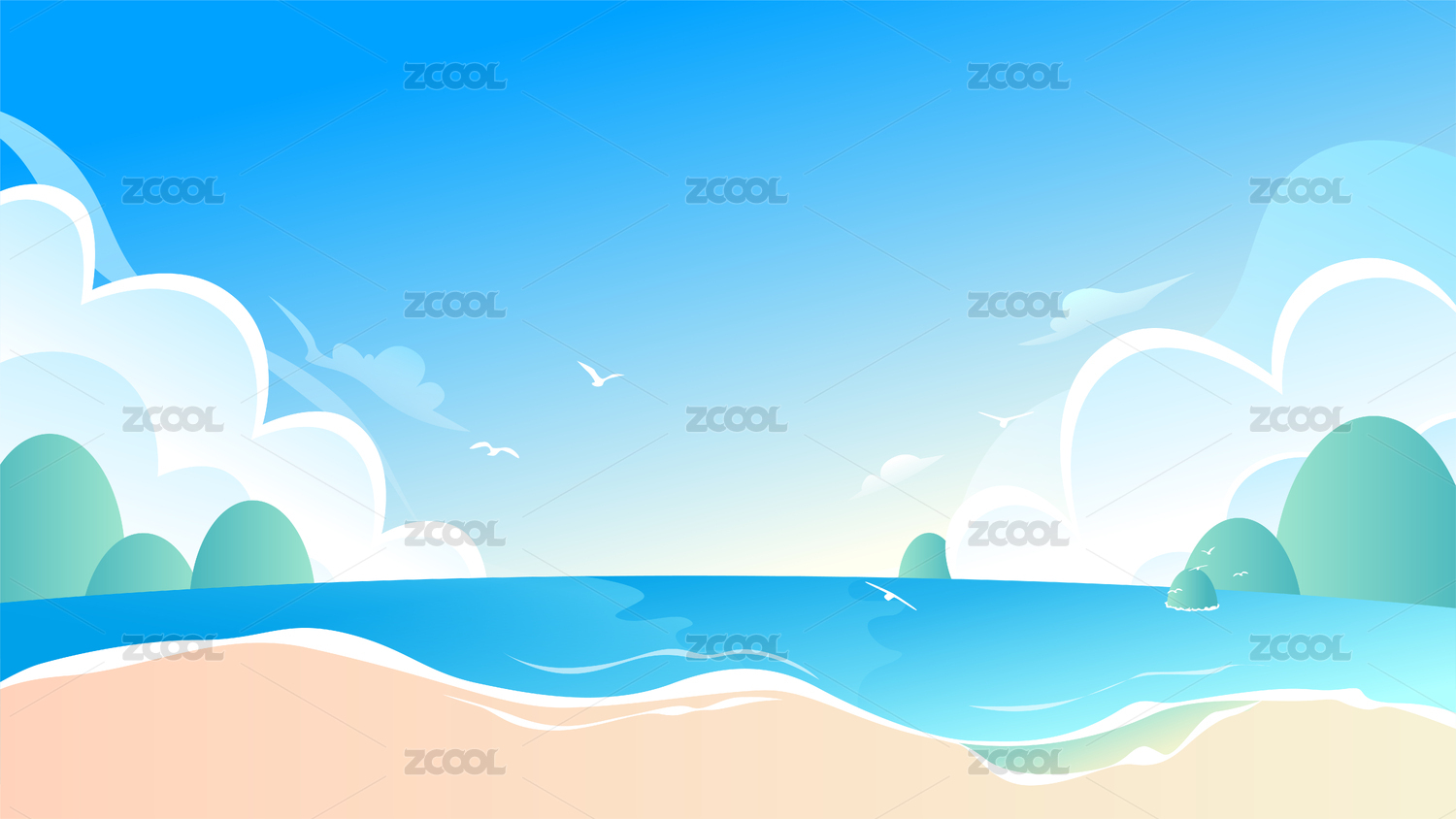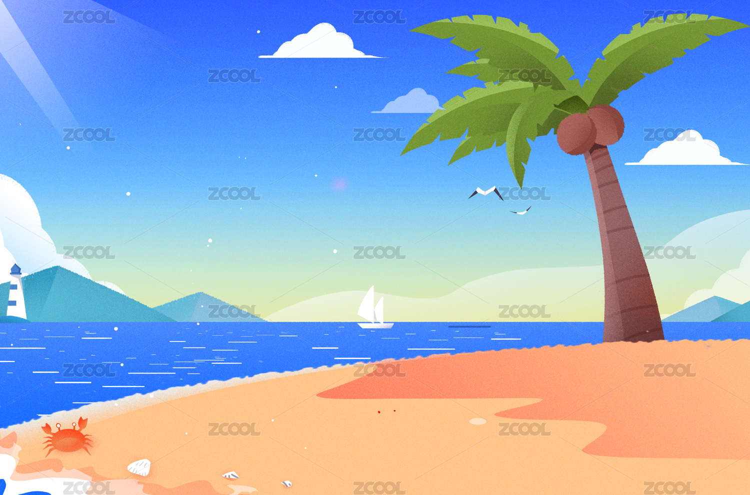 卡通风景夏季出游夏天海边度假旅游矢量插画