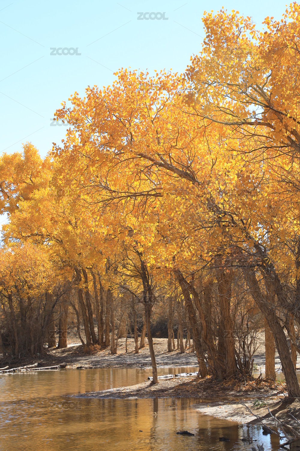 中国甘肃酒泉金塔胡杨林金秋黄叶