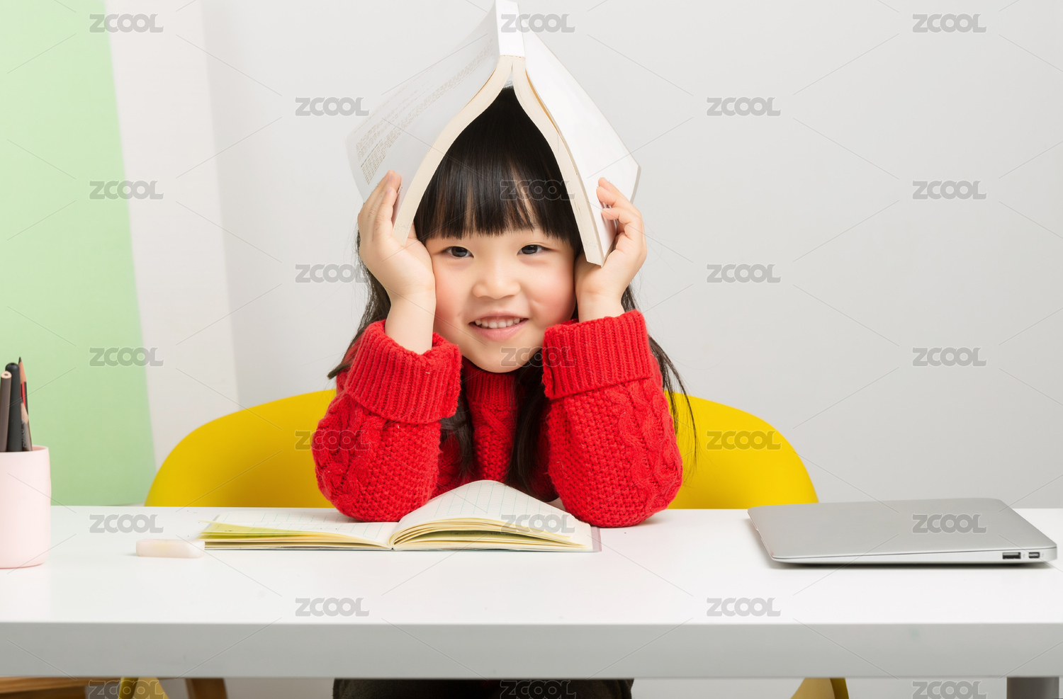 把书当做雨伞的孩子