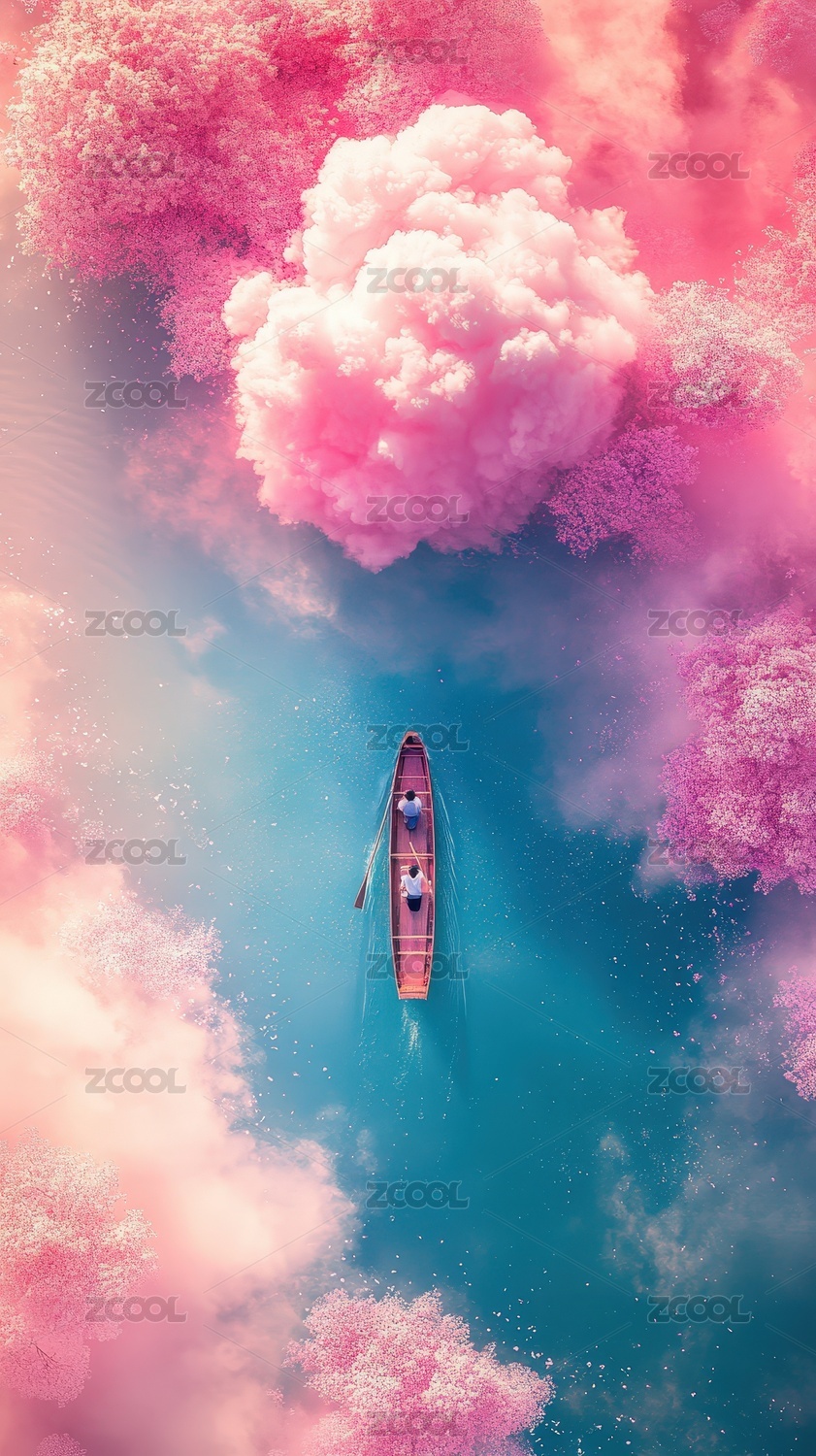湖面云朵船舶极简风景清新简约唯美节气插画