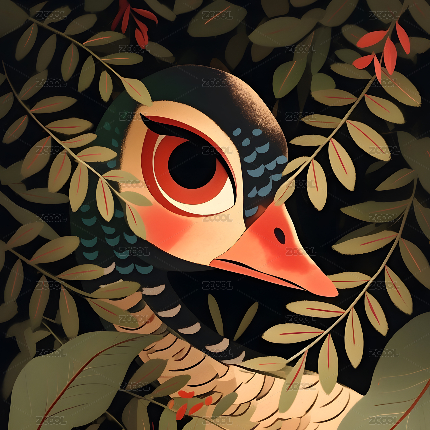 扁平风动物插画鸭子