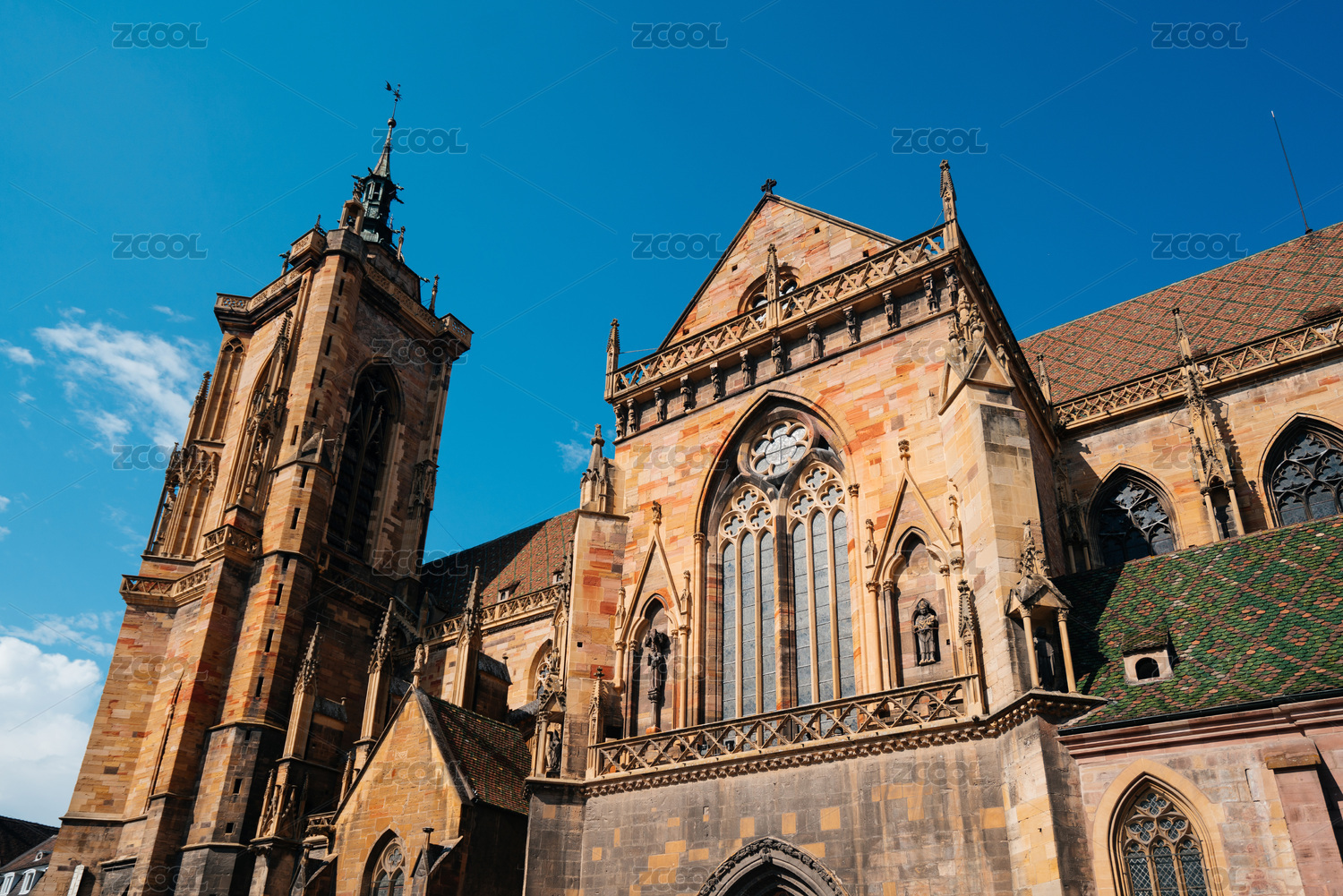 法国阿尔萨斯省科尔马大教堂建筑风光
