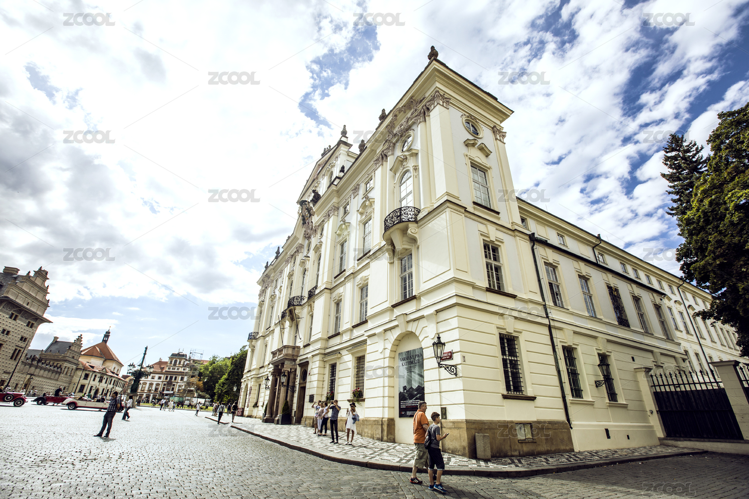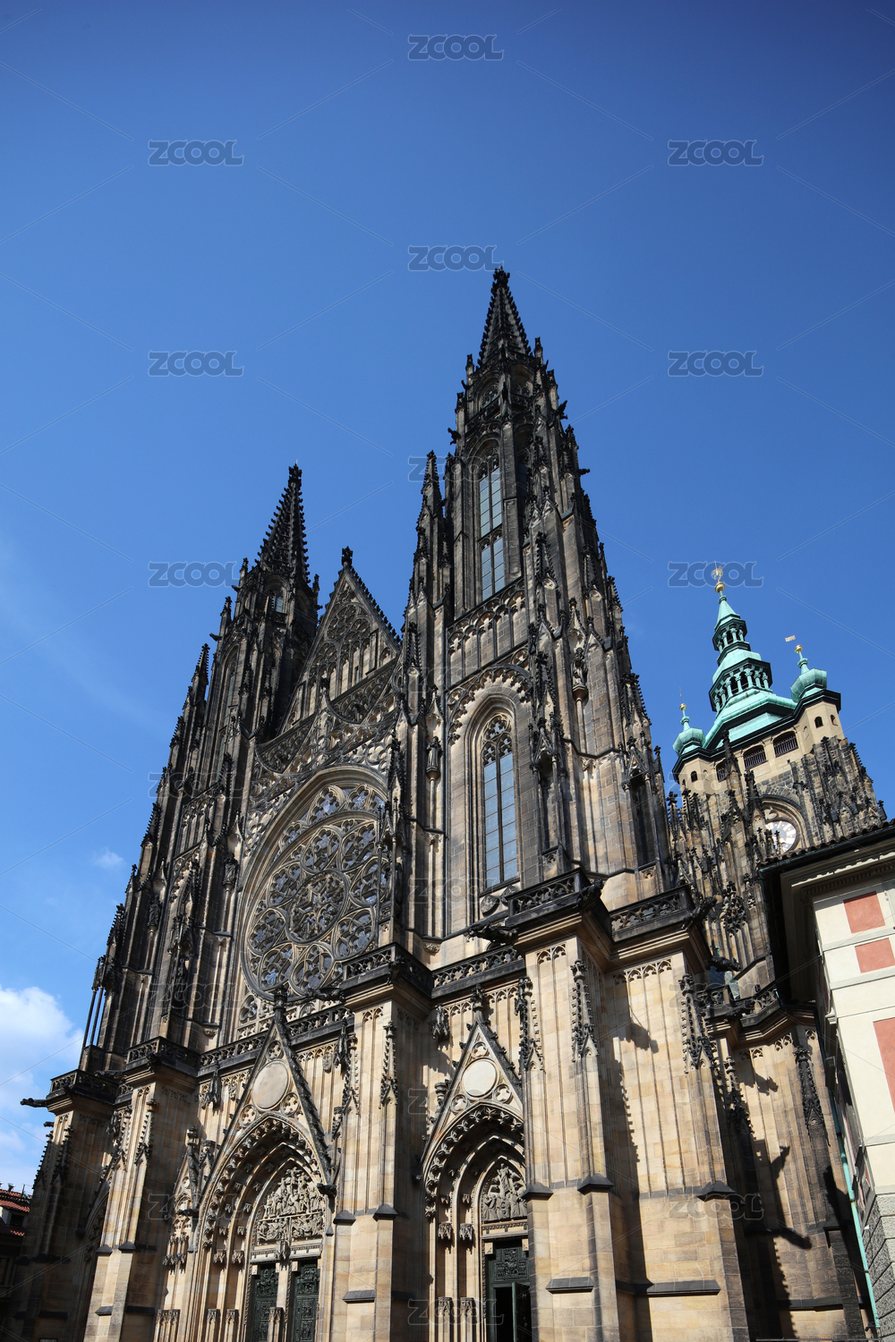 欧洲捷克布拉格圣维特教堂晴天正侧面小全景