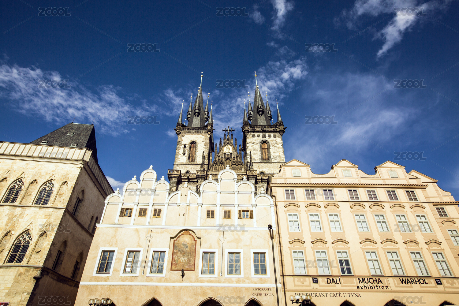 欧洲捷克布拉格旧城广场泰恩教堂大全景