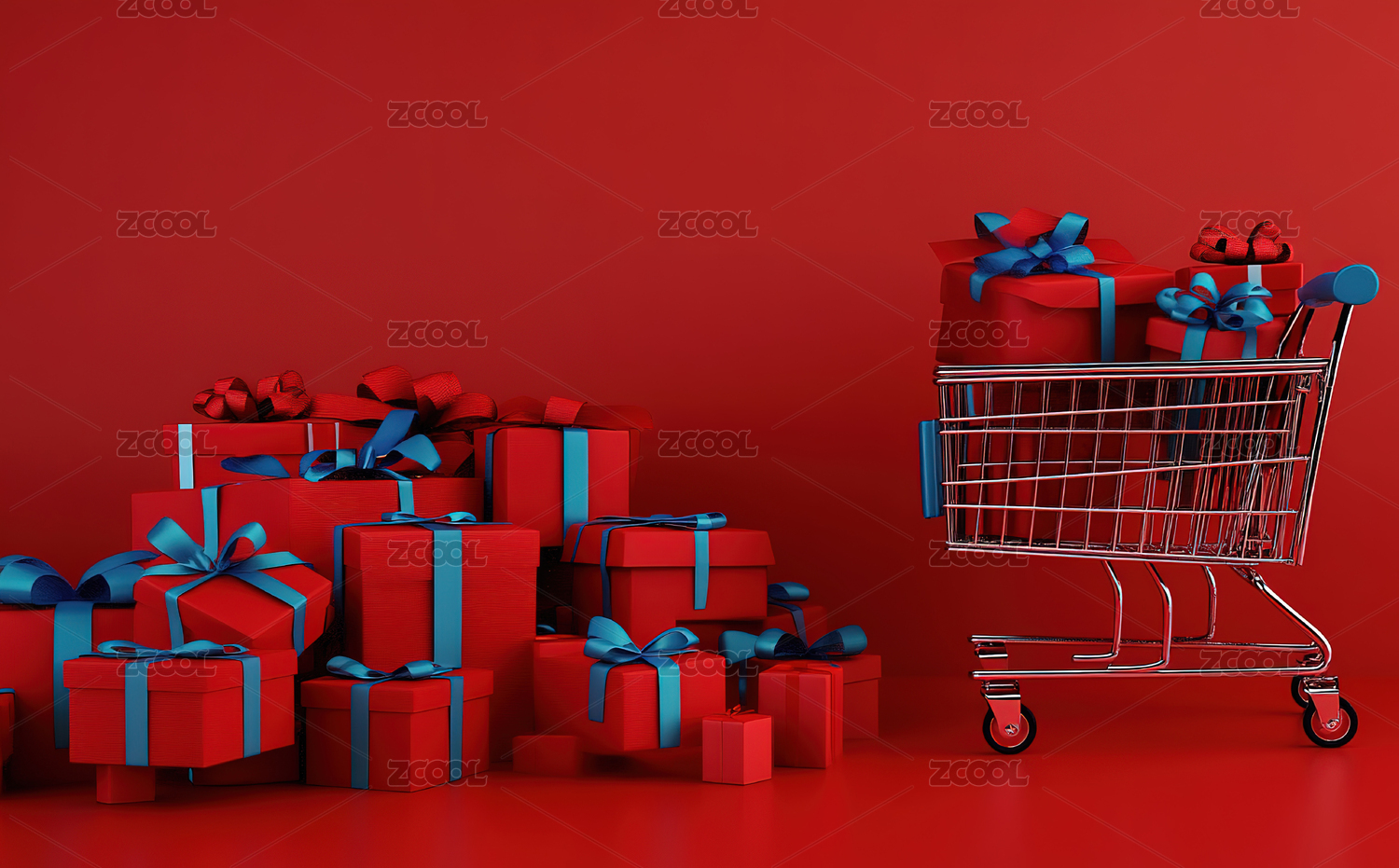一辆装满礼盒的购物车