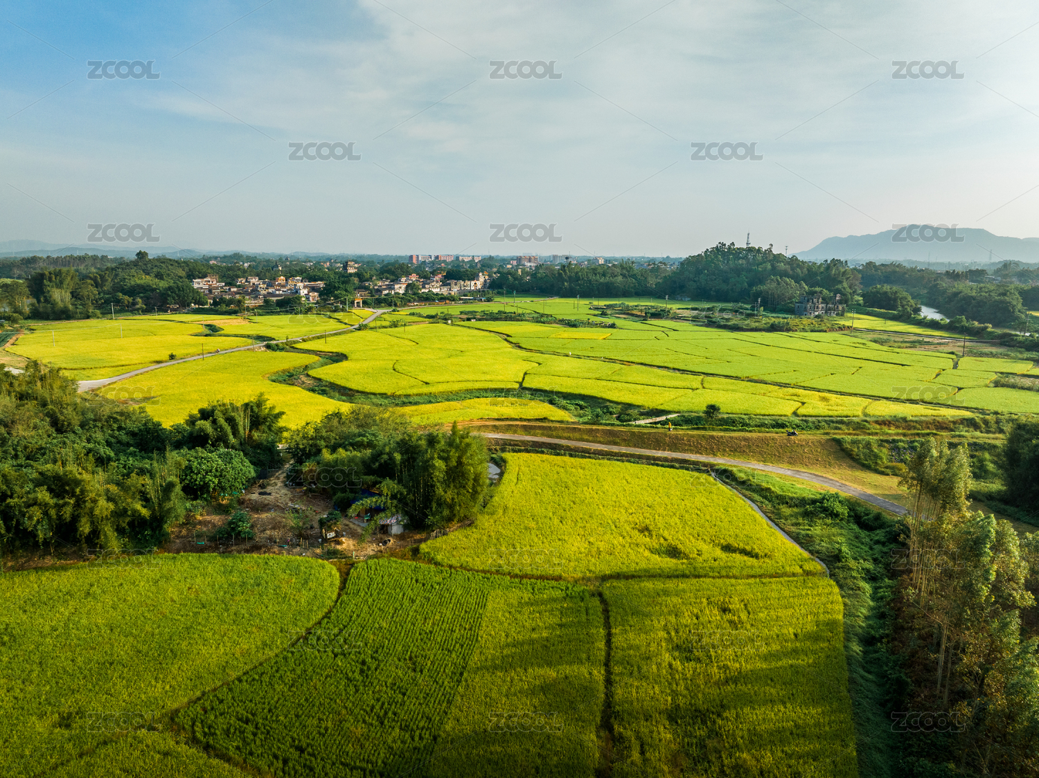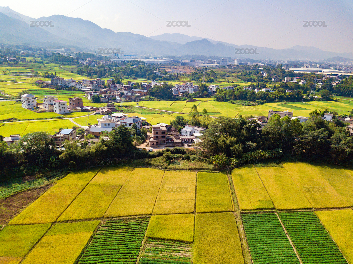 中国,福建,武平县,稻田,金色,绿色,房屋,农村,天空,线条