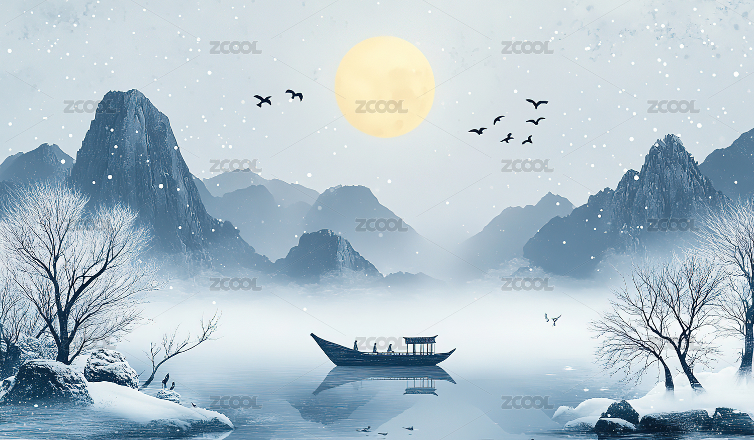 冬日雪景下的传统建筑,宁静祥和的东方意境