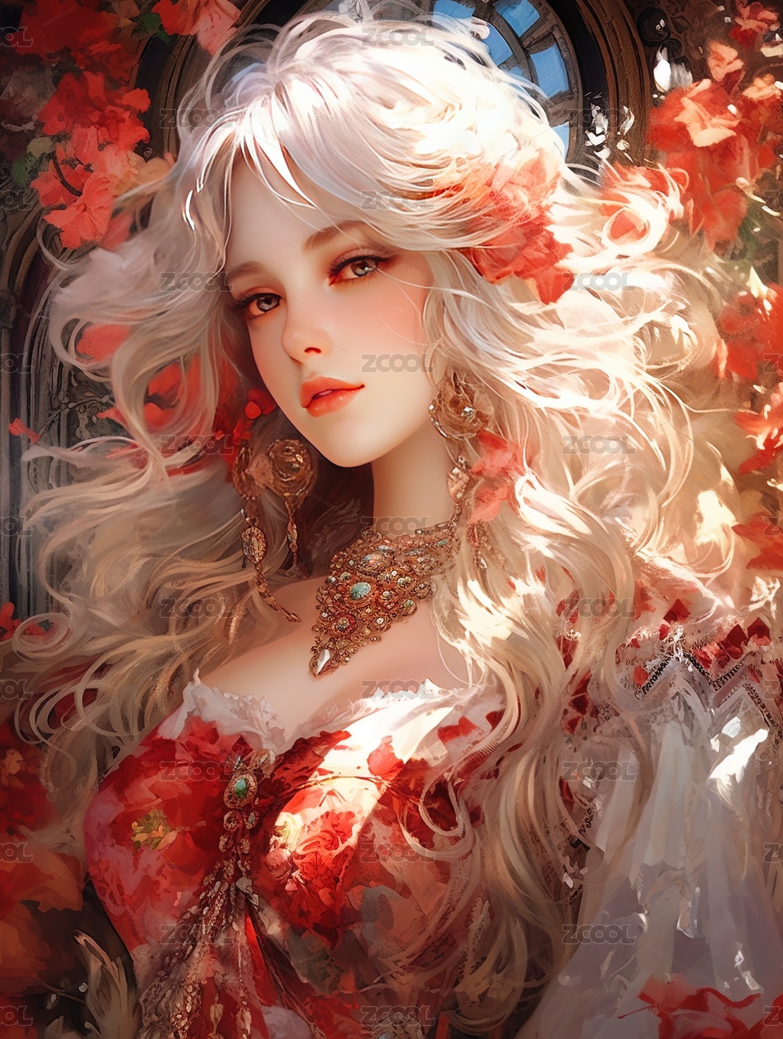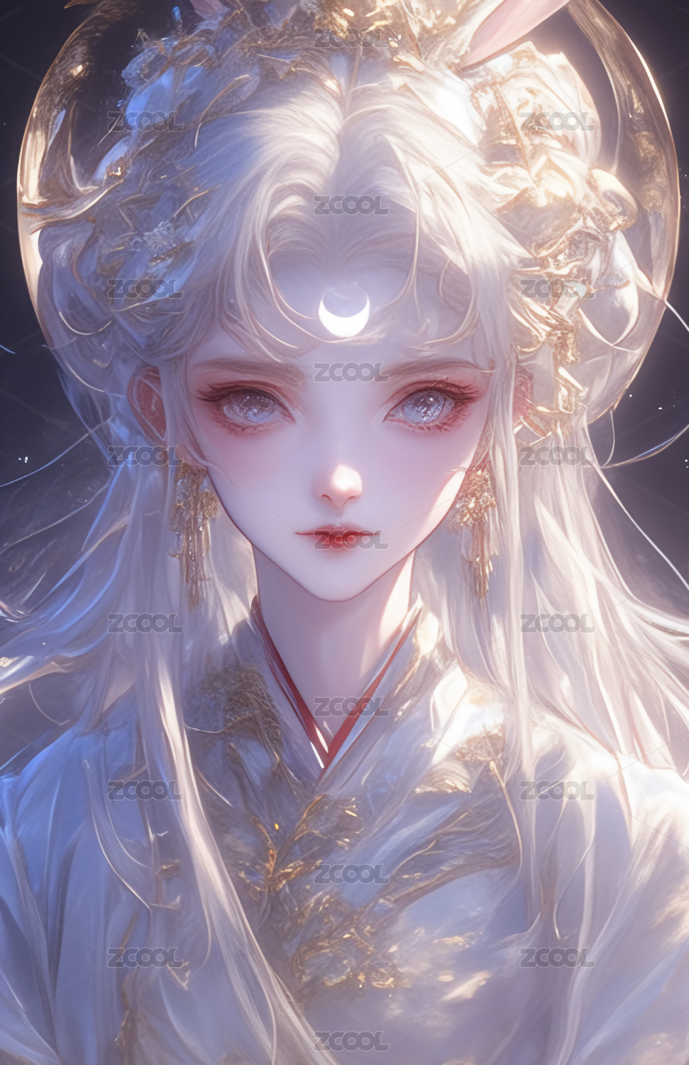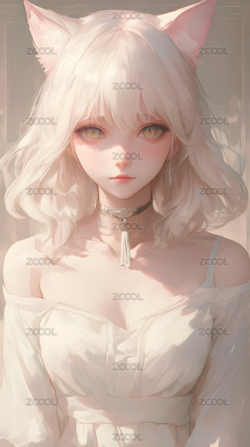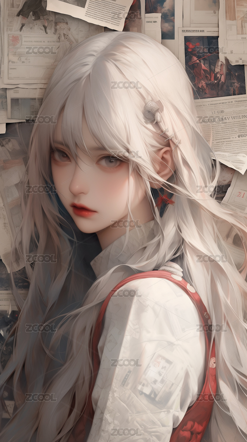 梦幻少女轻抚脸颊银发红眼闪耀光芒