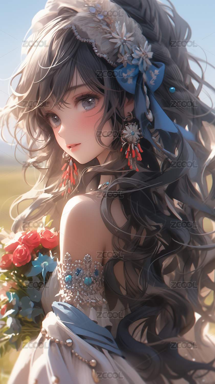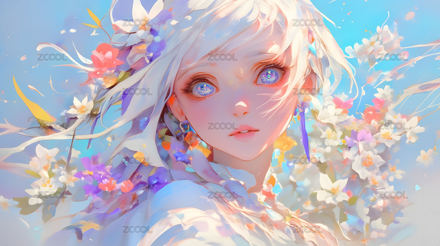 可爱的动漫女孩缤纷的色彩壁纸背景