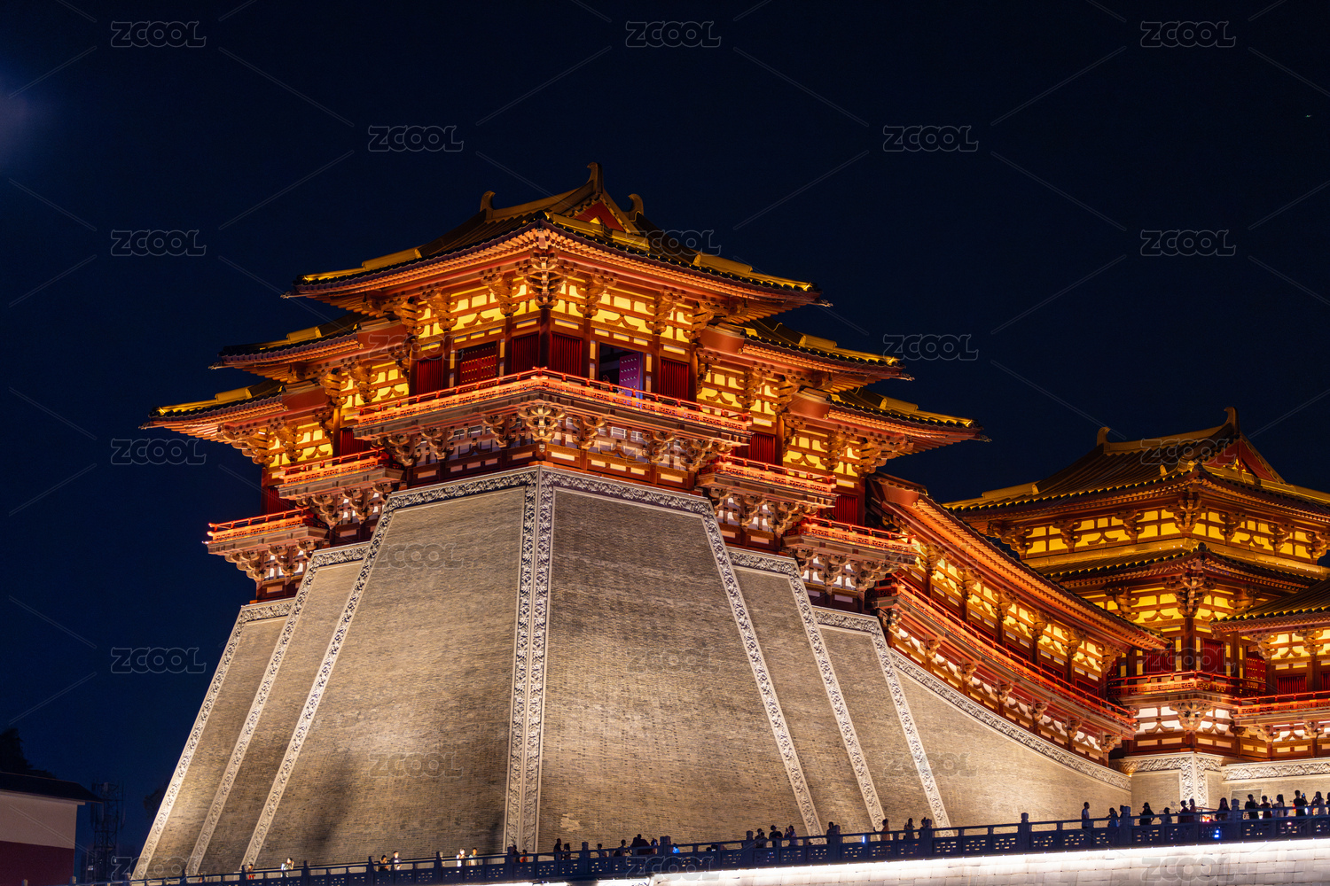洛阳应天门宫殿城墙蜿蜒夜景