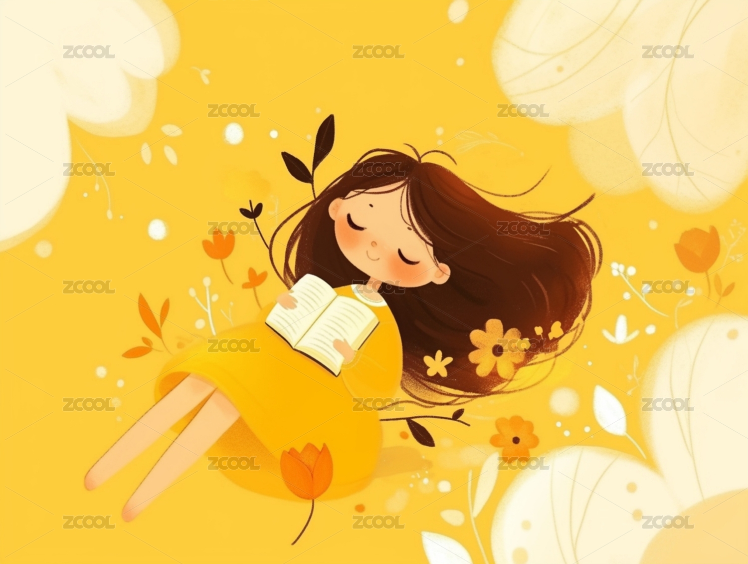草地上休息的可爱女孩卡通插画