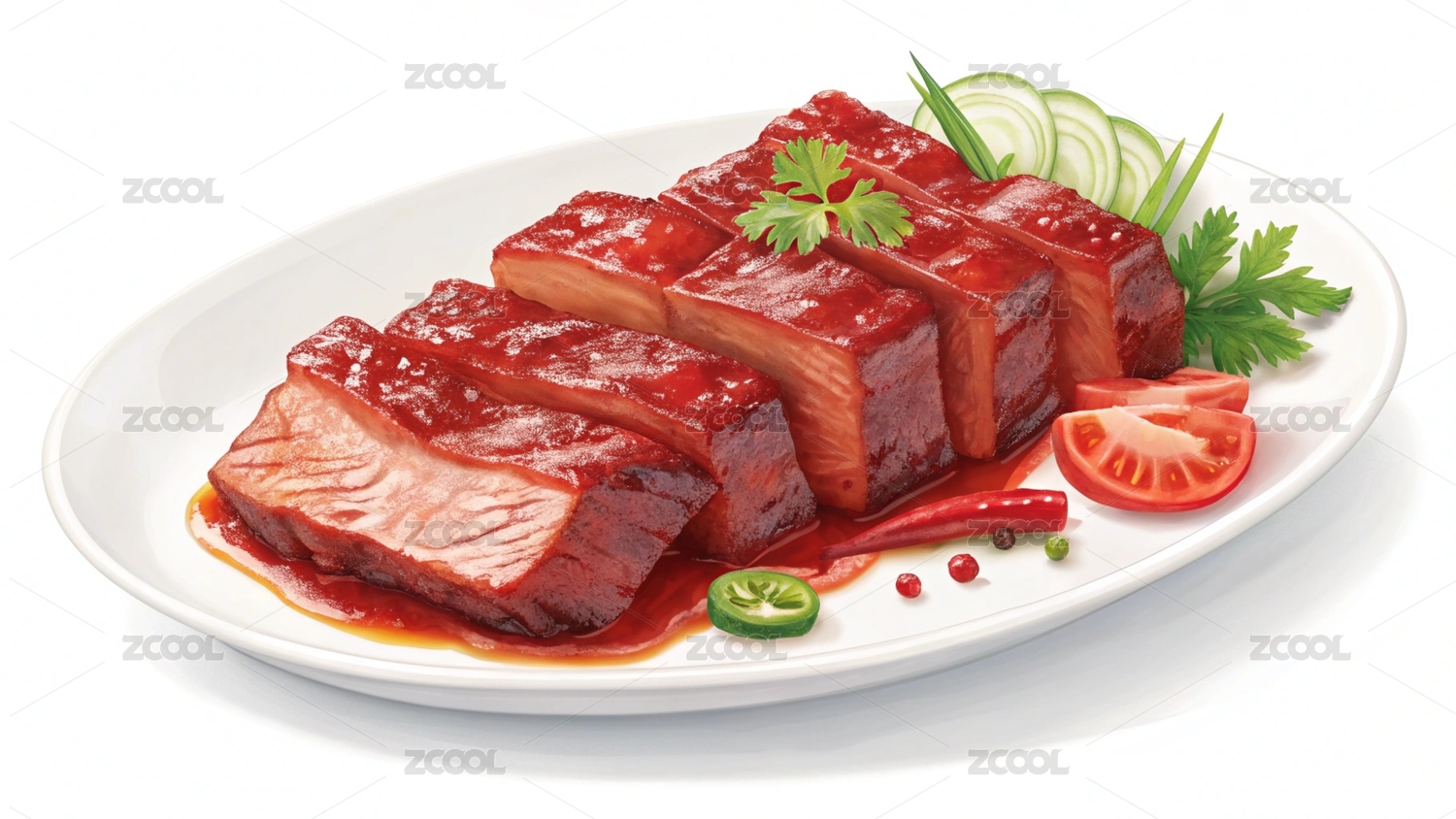 白色背景排骨红烧肉广式黑豆蒜蓉蒸排骨插画