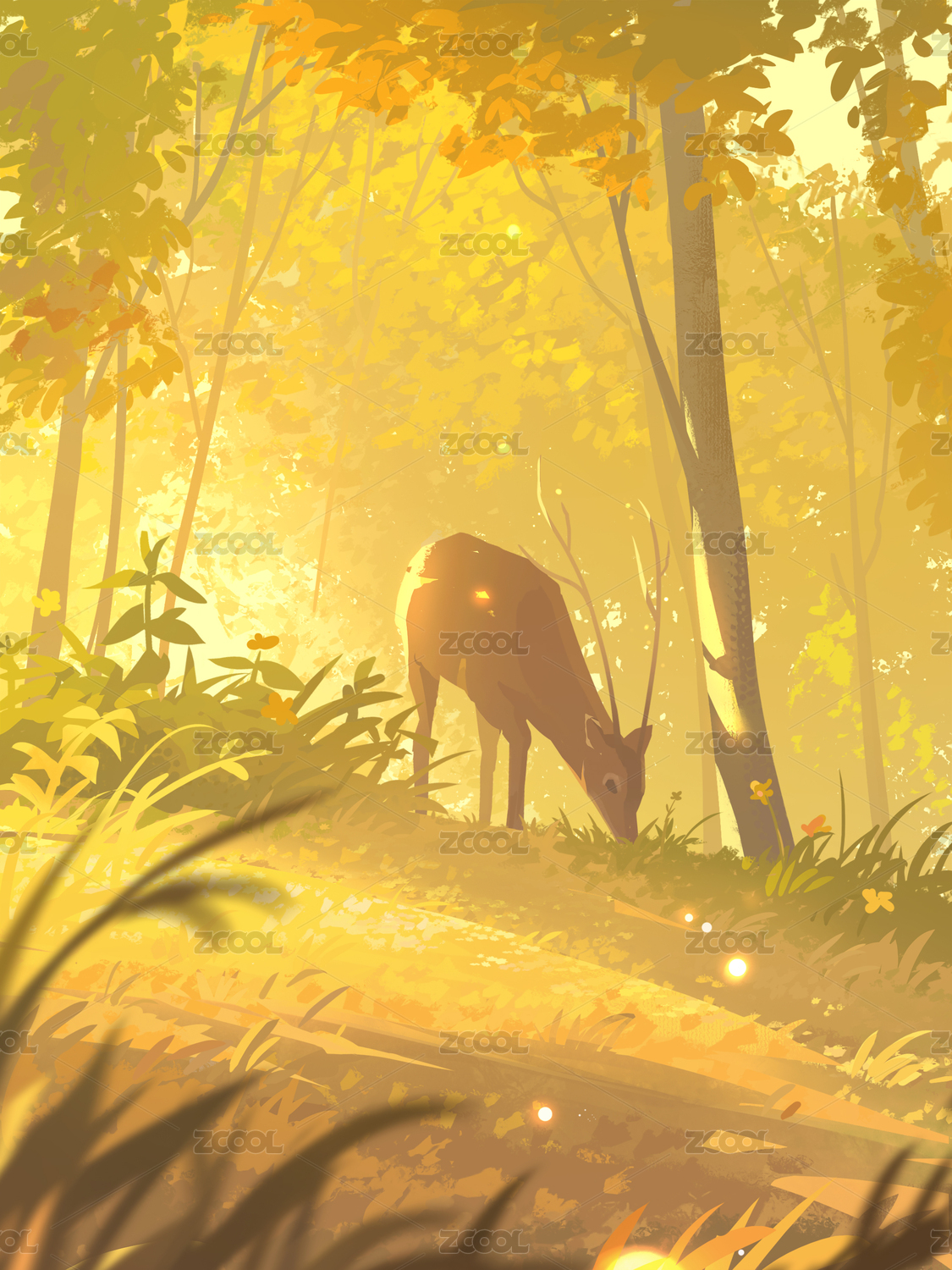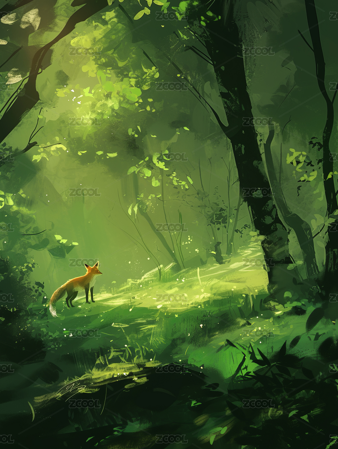动物,壁纸,清新,插画,草,植物,树,大自然,森林,狐狸