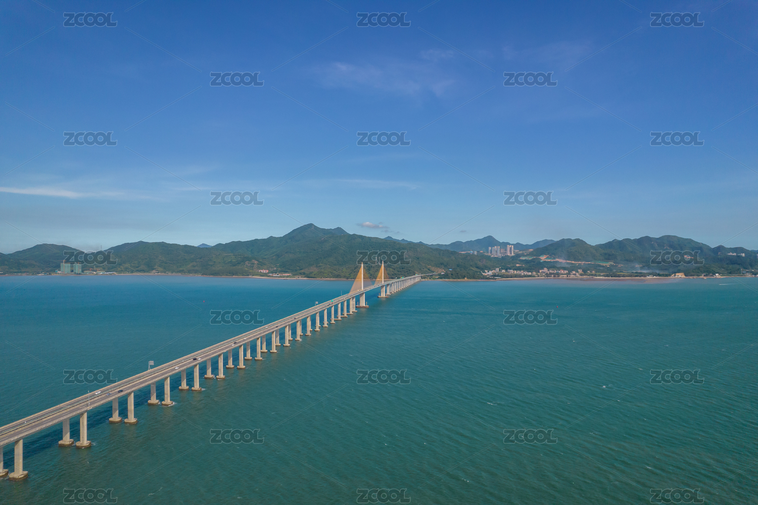 航拍中国广东珠海淇澳岛淇澳大桥风光