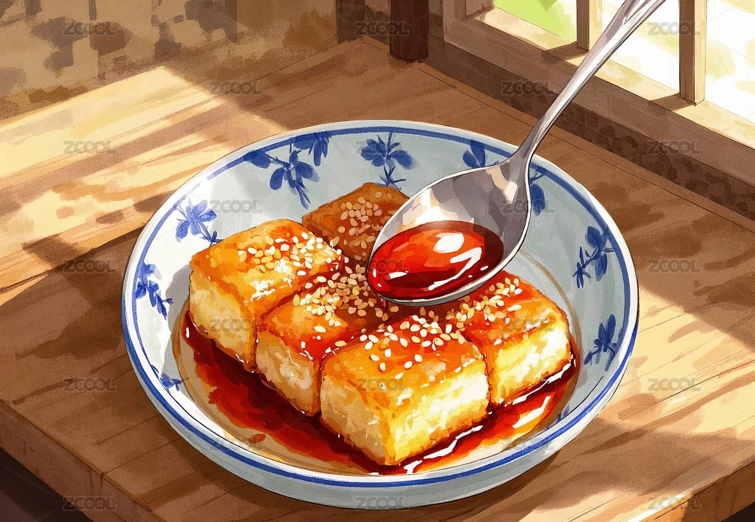 插画,食物,食品,中式,中国风,煎炸,炸鸡,鸡块,室内,桌面