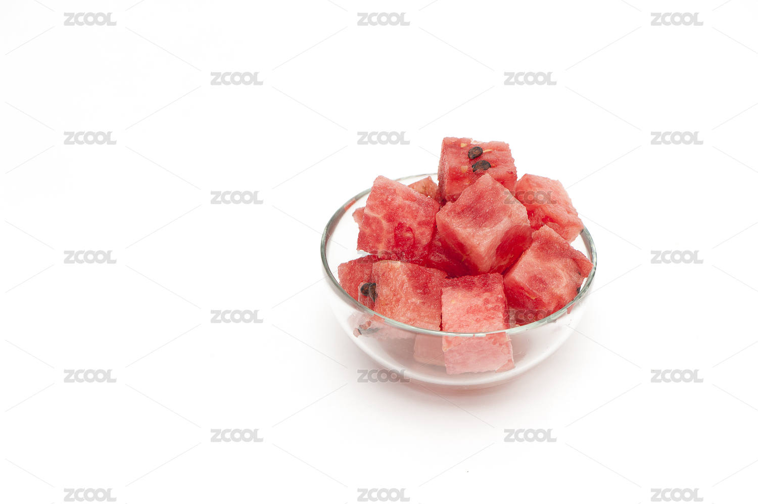 切粒的西瓜放在玻璃碗里