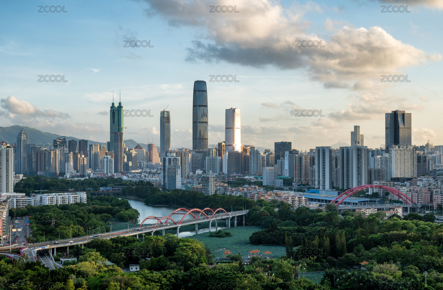 深圳,城市,摩天大楼,天空,火烧云,车轨,风光,都市,繁华,金融