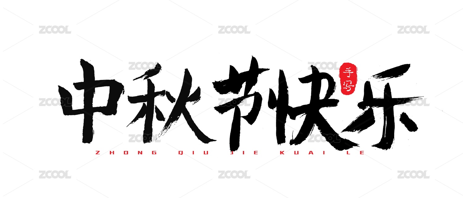 中秋快乐-中国传统节日原创书法手写矢量字体
