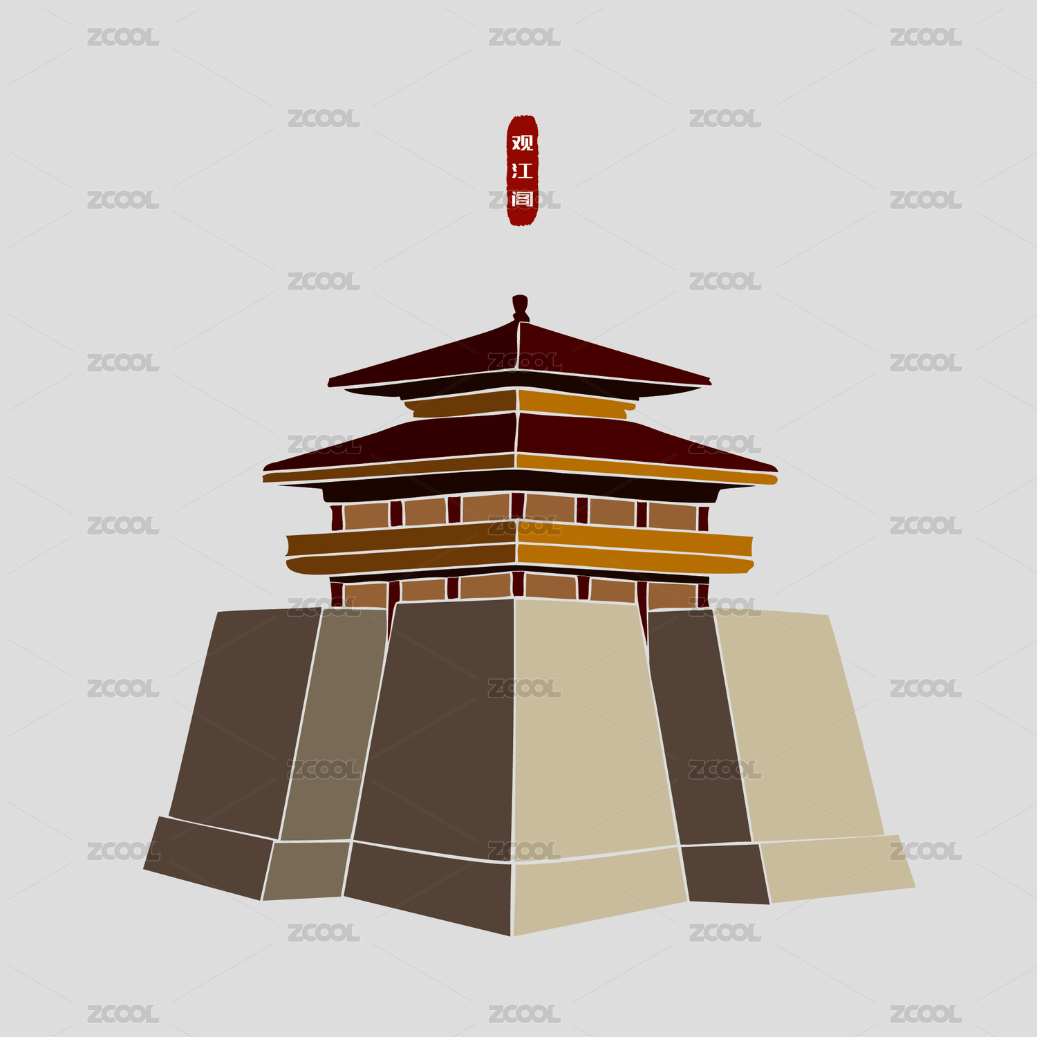 古典建筑 状元洲状元阁塔 标志矢量素材