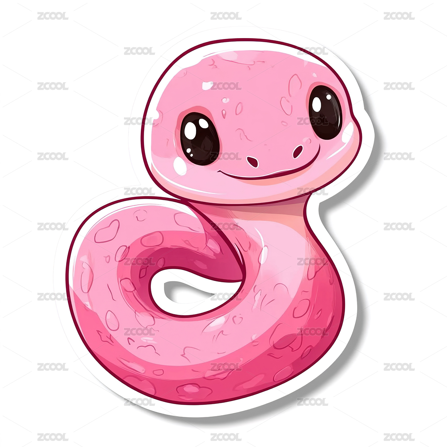 粉色蛇,卡通,贴纸,可爱,蛇,动物,插画,漫画,设计,图案