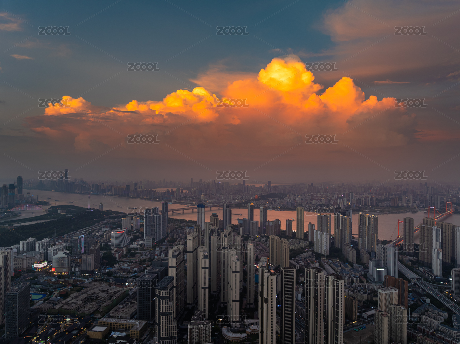 夏季白天航拍湖北武汉市长江沿岸城市风光