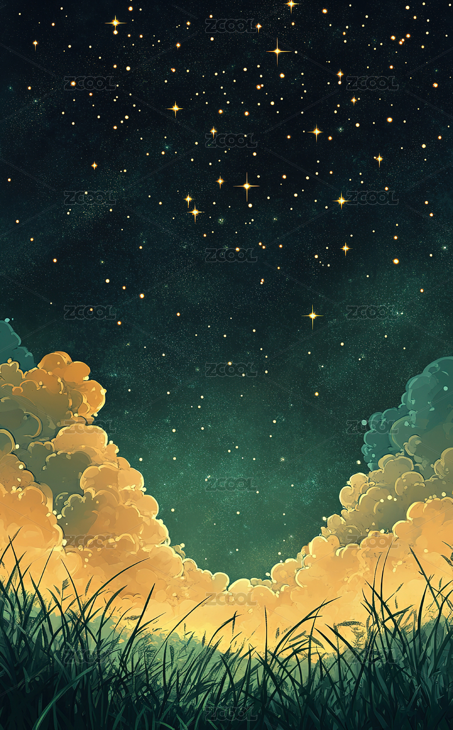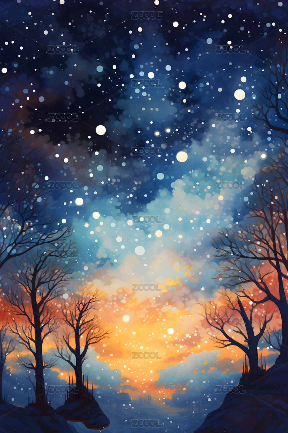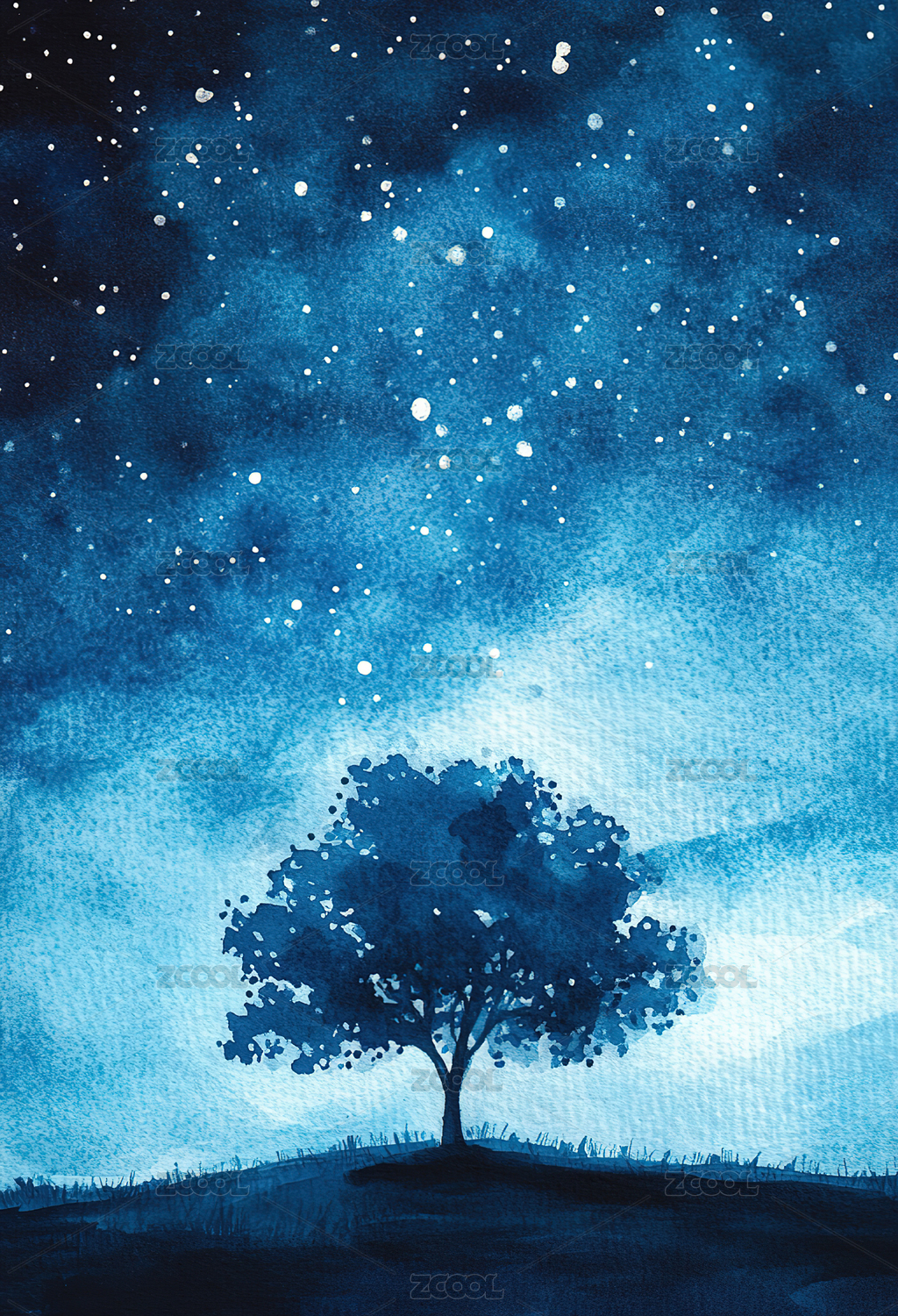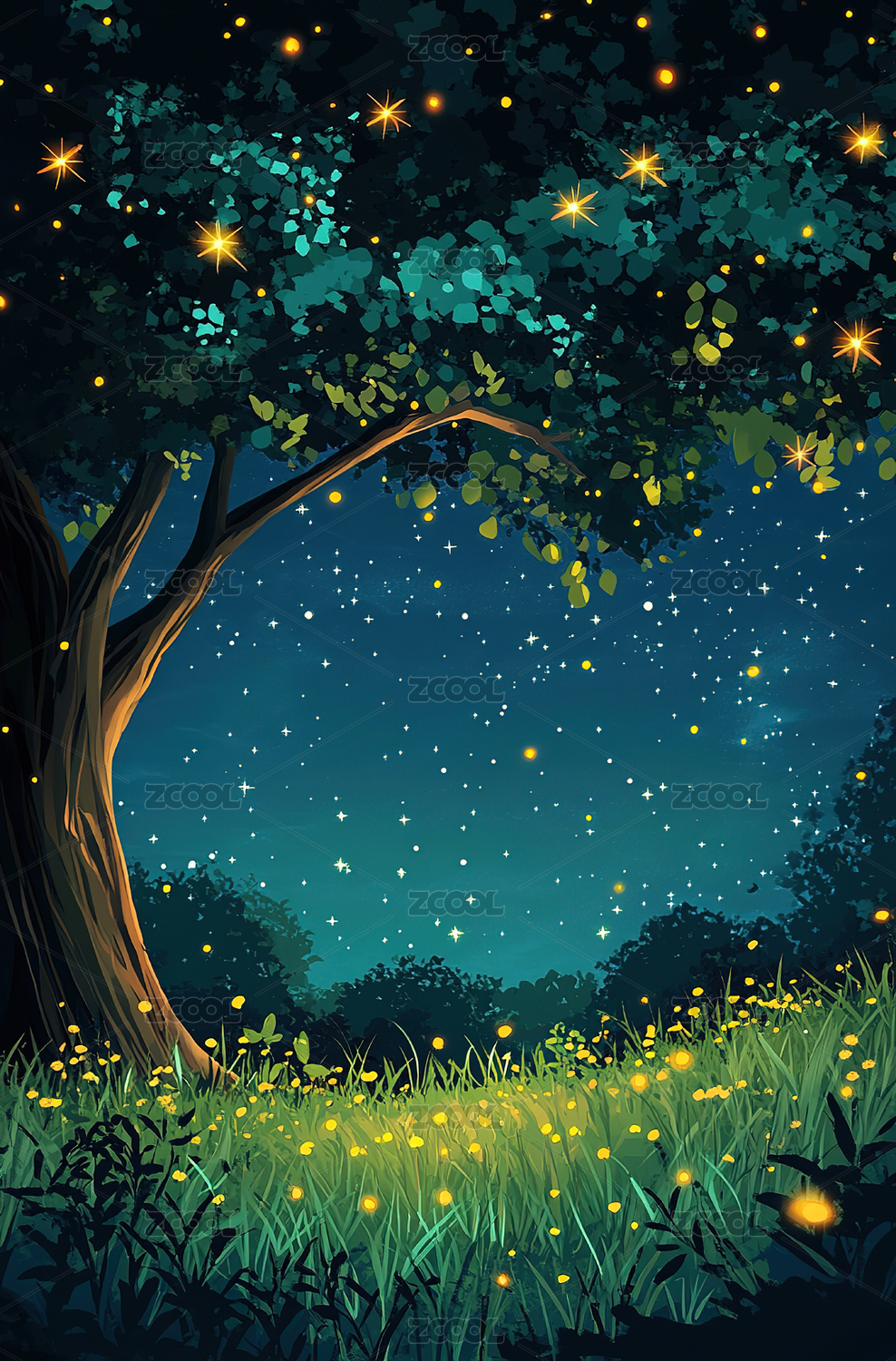晚上公园大树路灯下羊毛毡长椅3D卡通插画