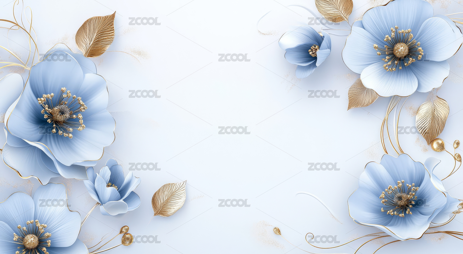 蓝白色花卉装饰背景