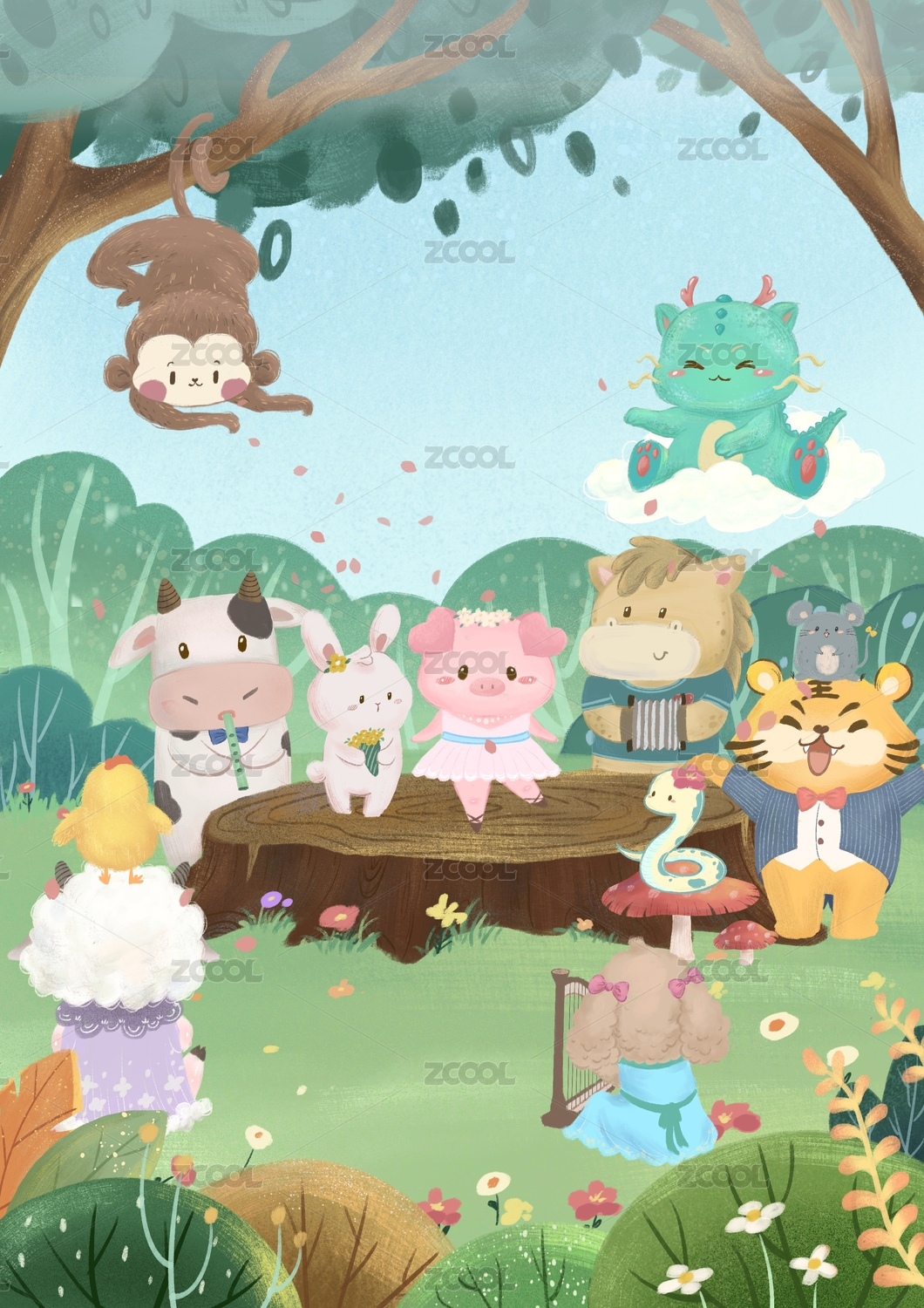 愚人节恶搞整蛊插画儿童节小丑表演活动海报