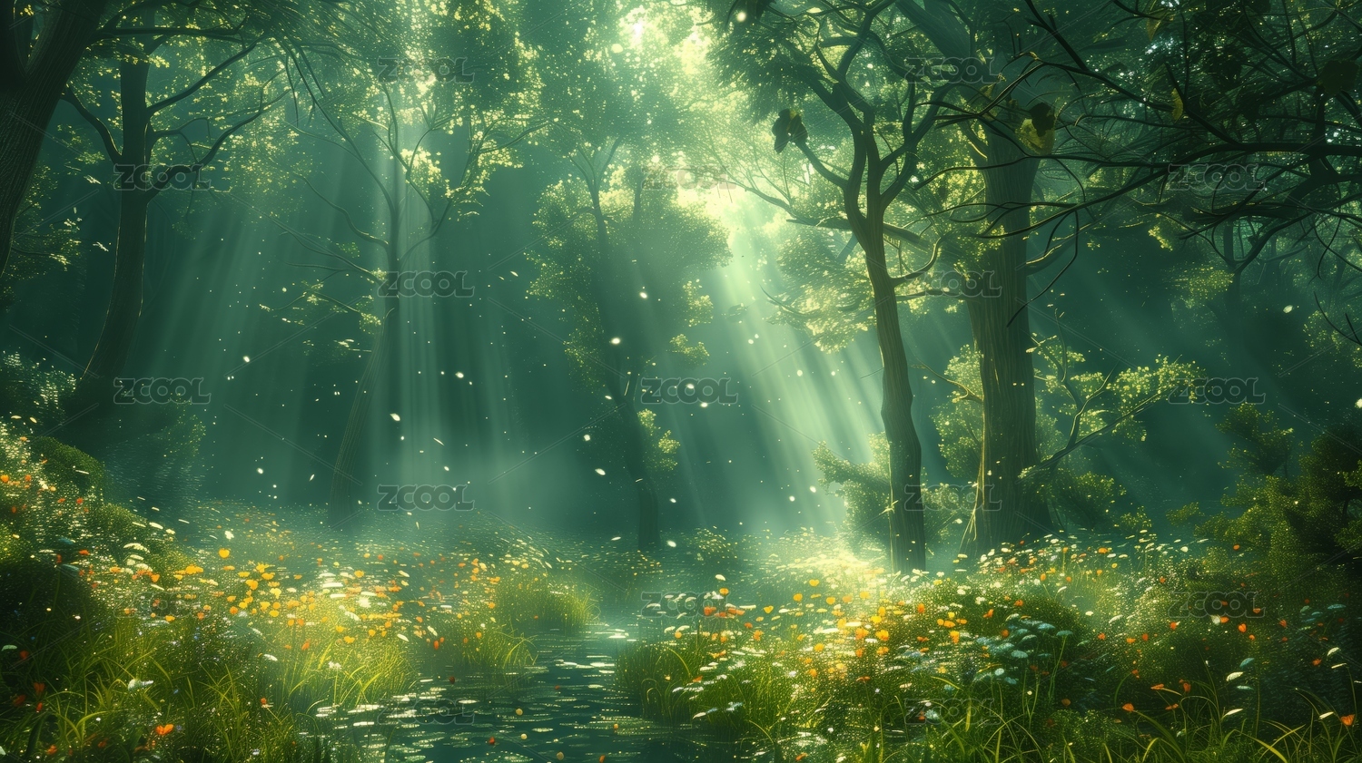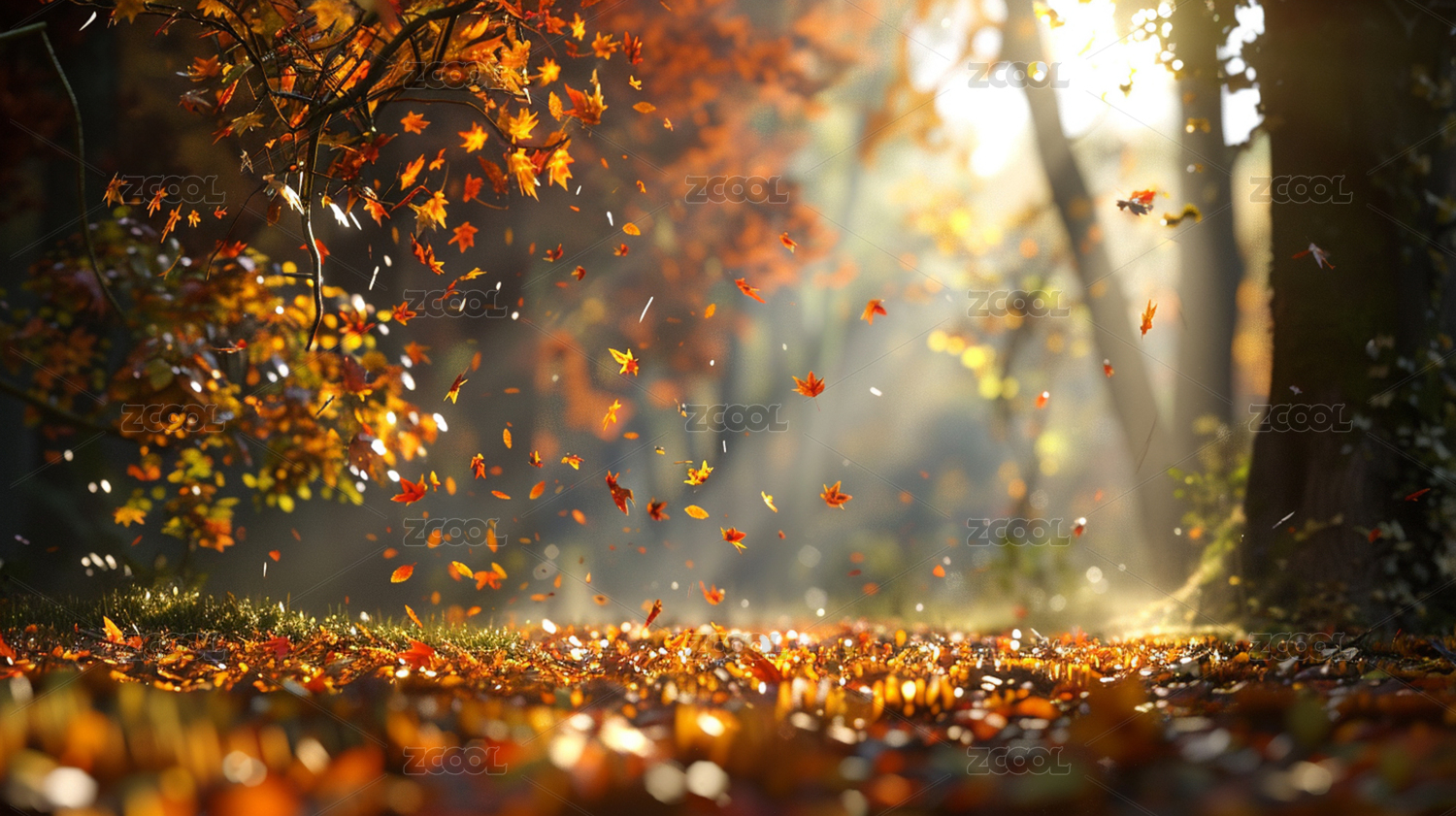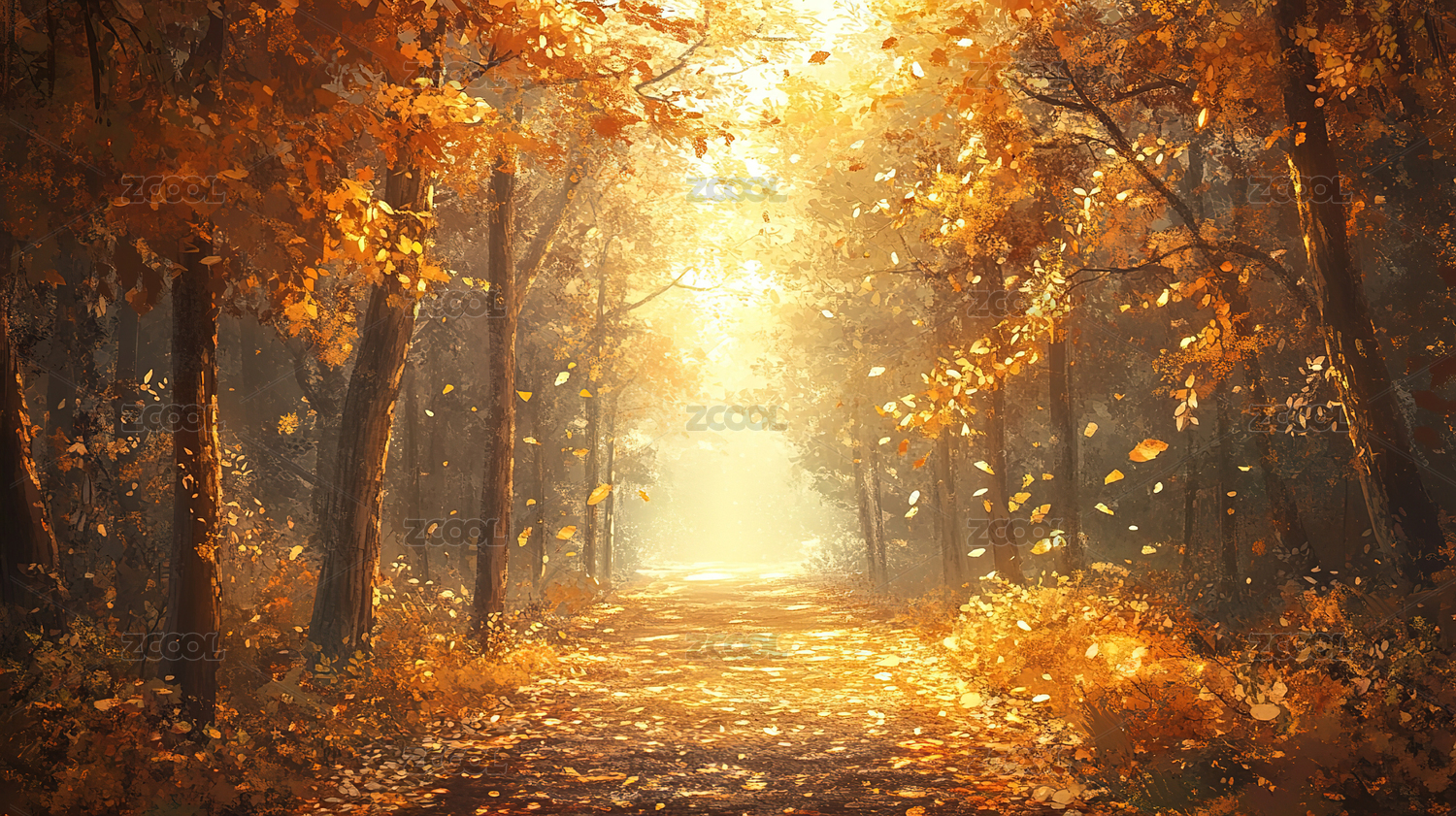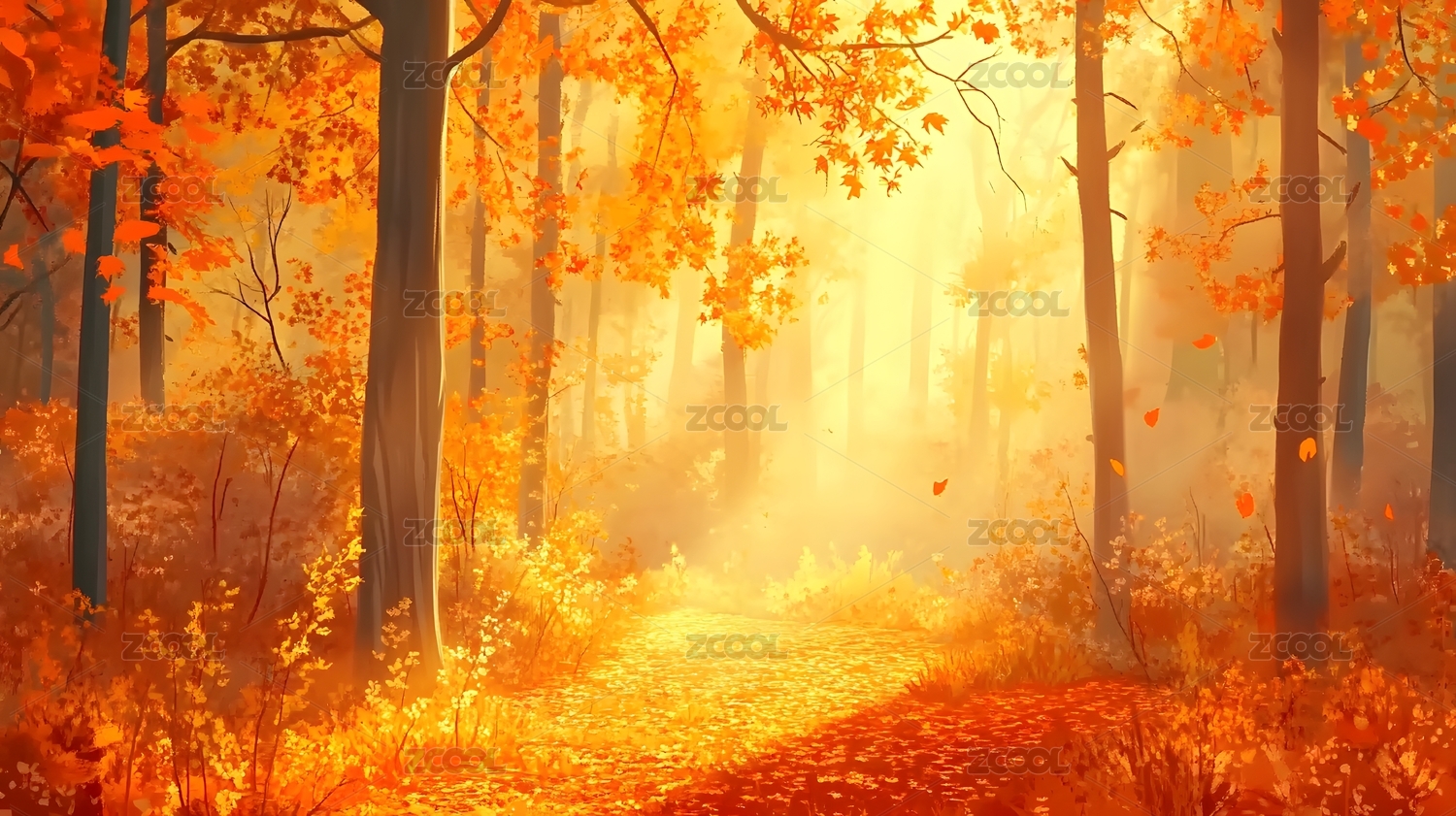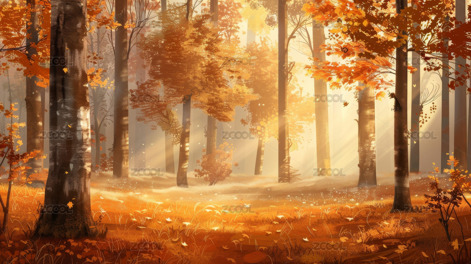 插画,风景,自然,意境,树木,落叶,金色,秋天,秋景,森林