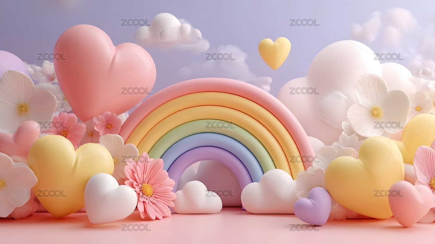 彩虹云朵卡通可爱背景图
