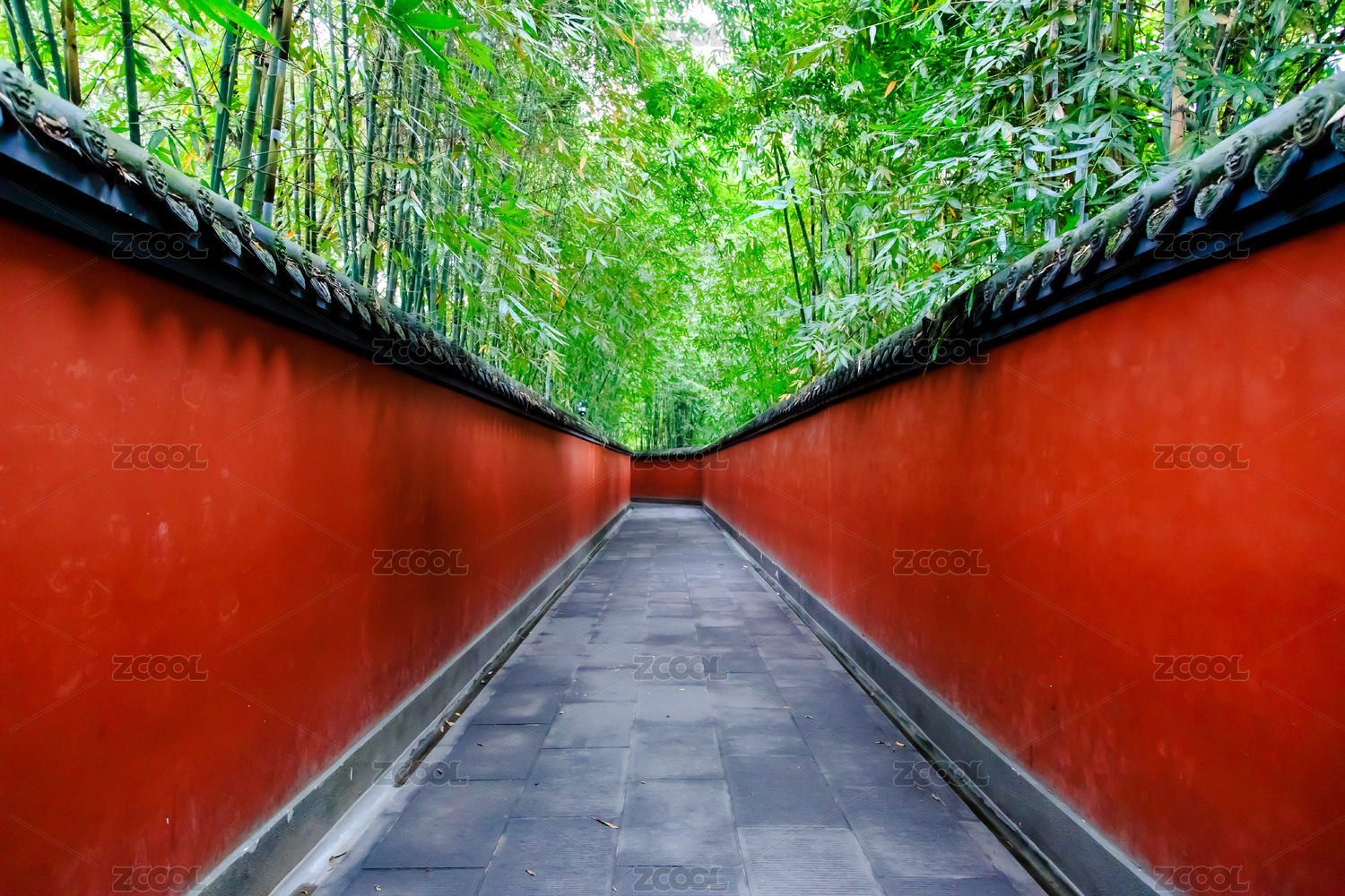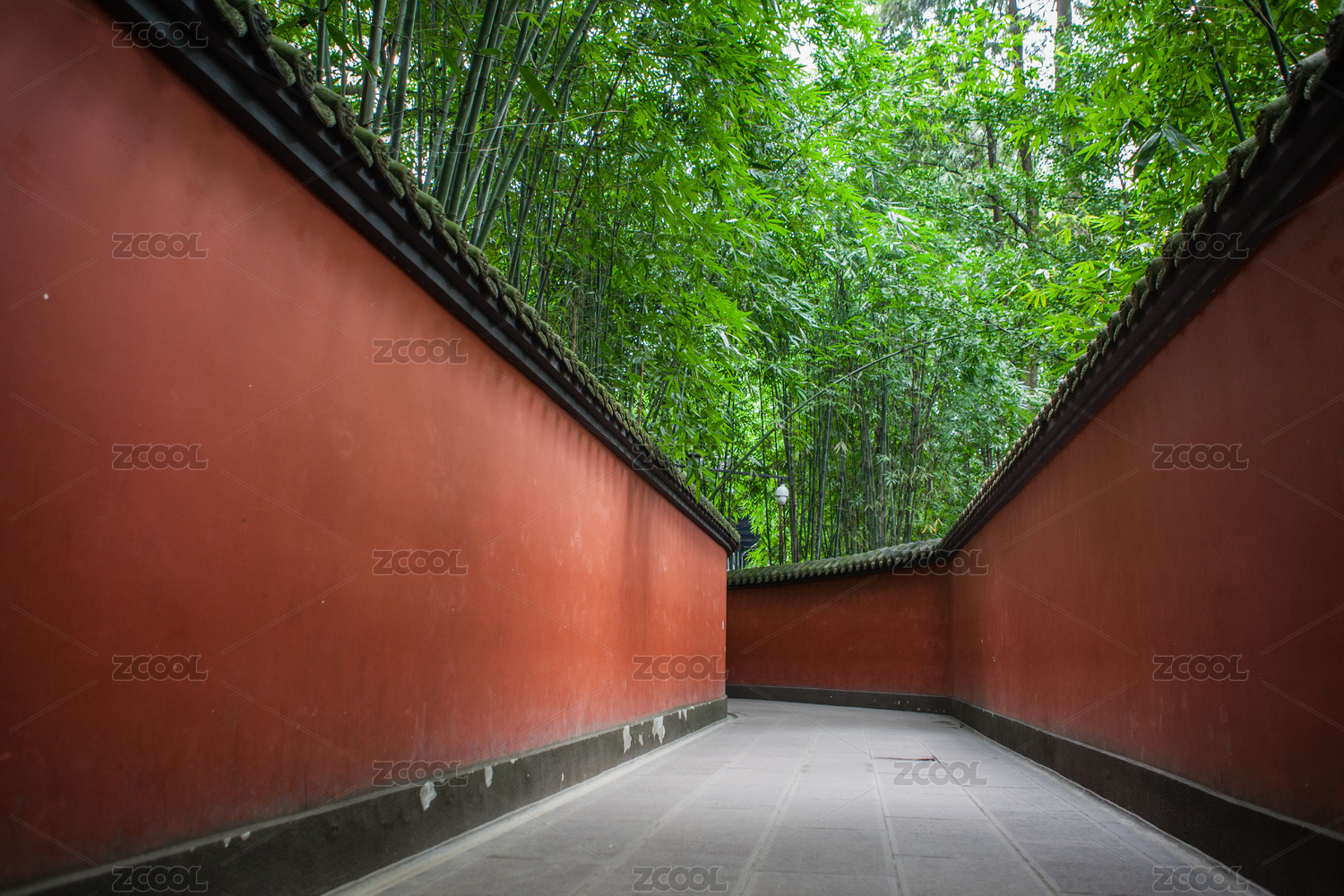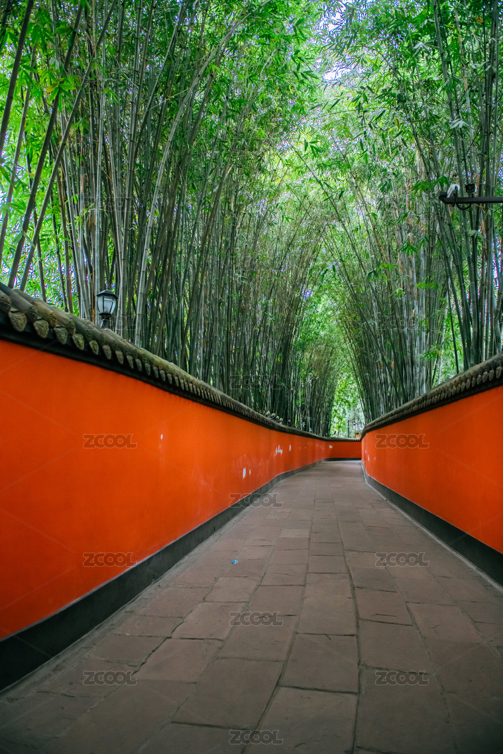 四川成都武侯祠蜿蜒的红墙和翠竹林