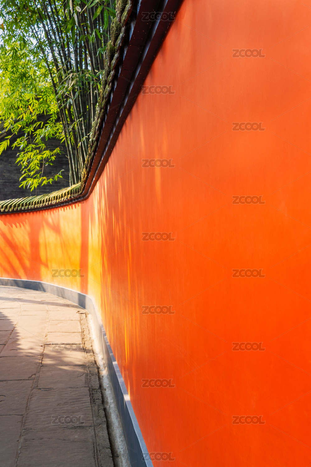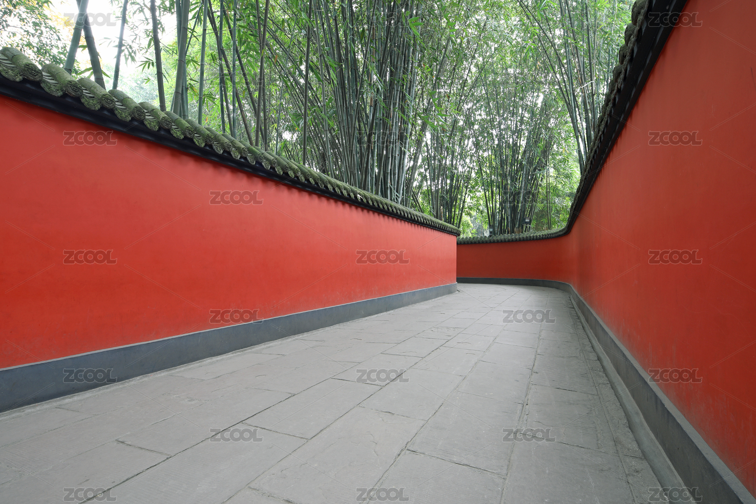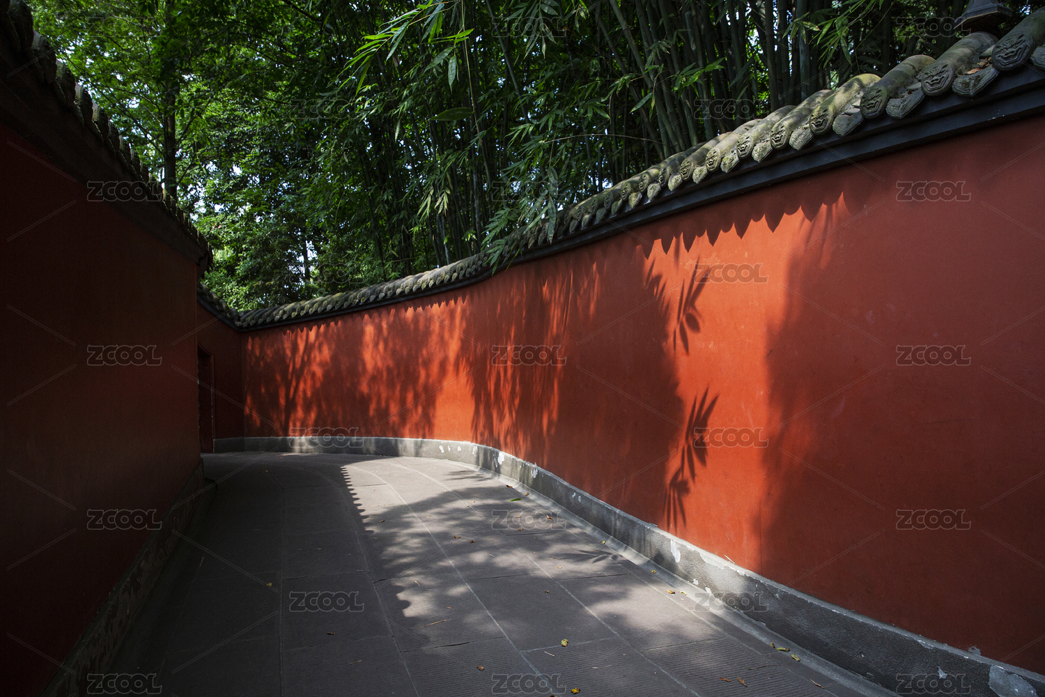 四川成都武侯祠蜿蜒的红墙和翠竹林
