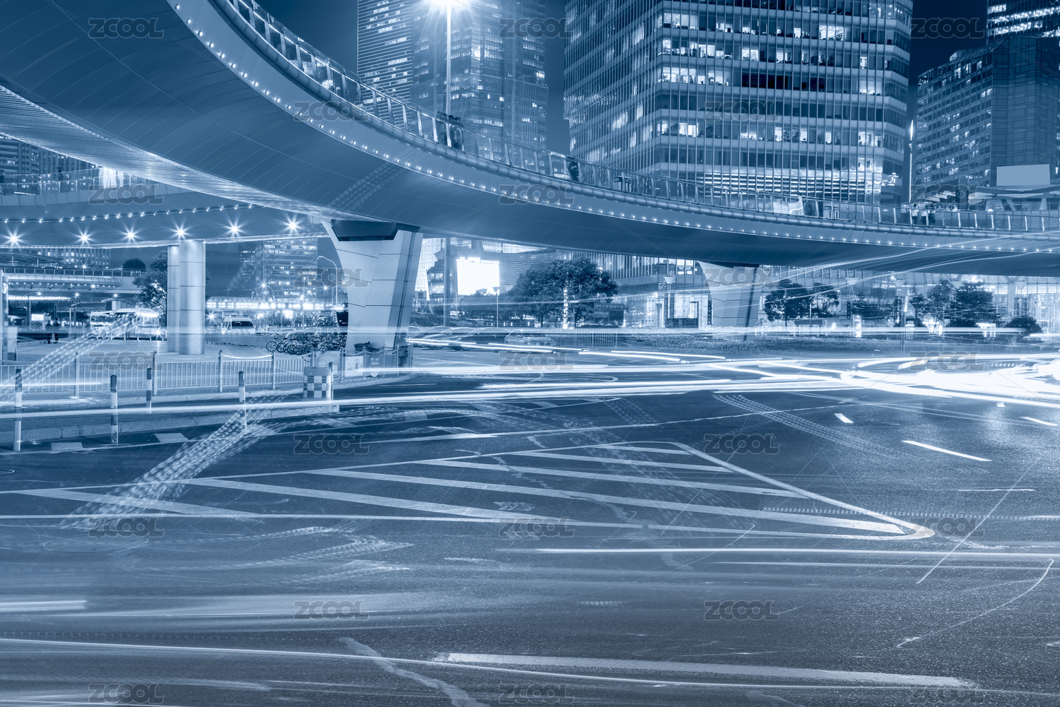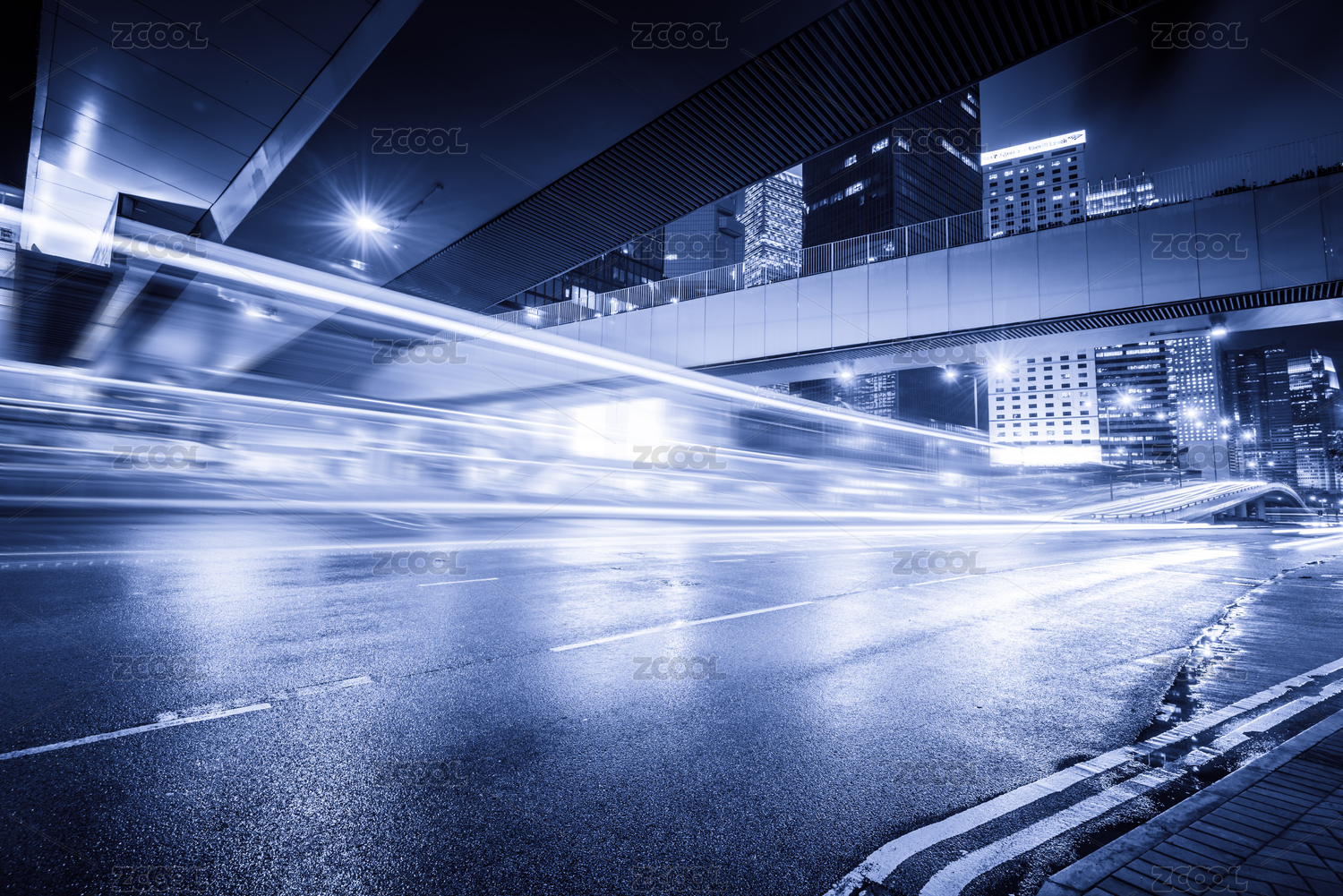 上海城市景观飞驰的汽车尾灯形成的光的轨迹