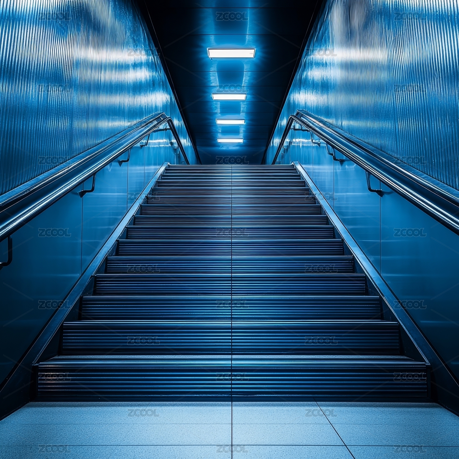 现代化的办公大楼,蓝色色调图像的自动扶梯。