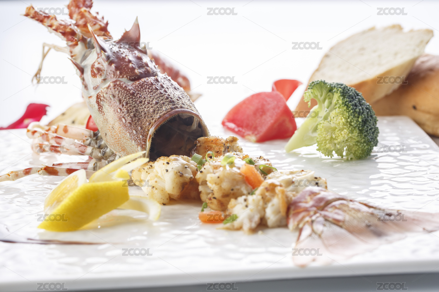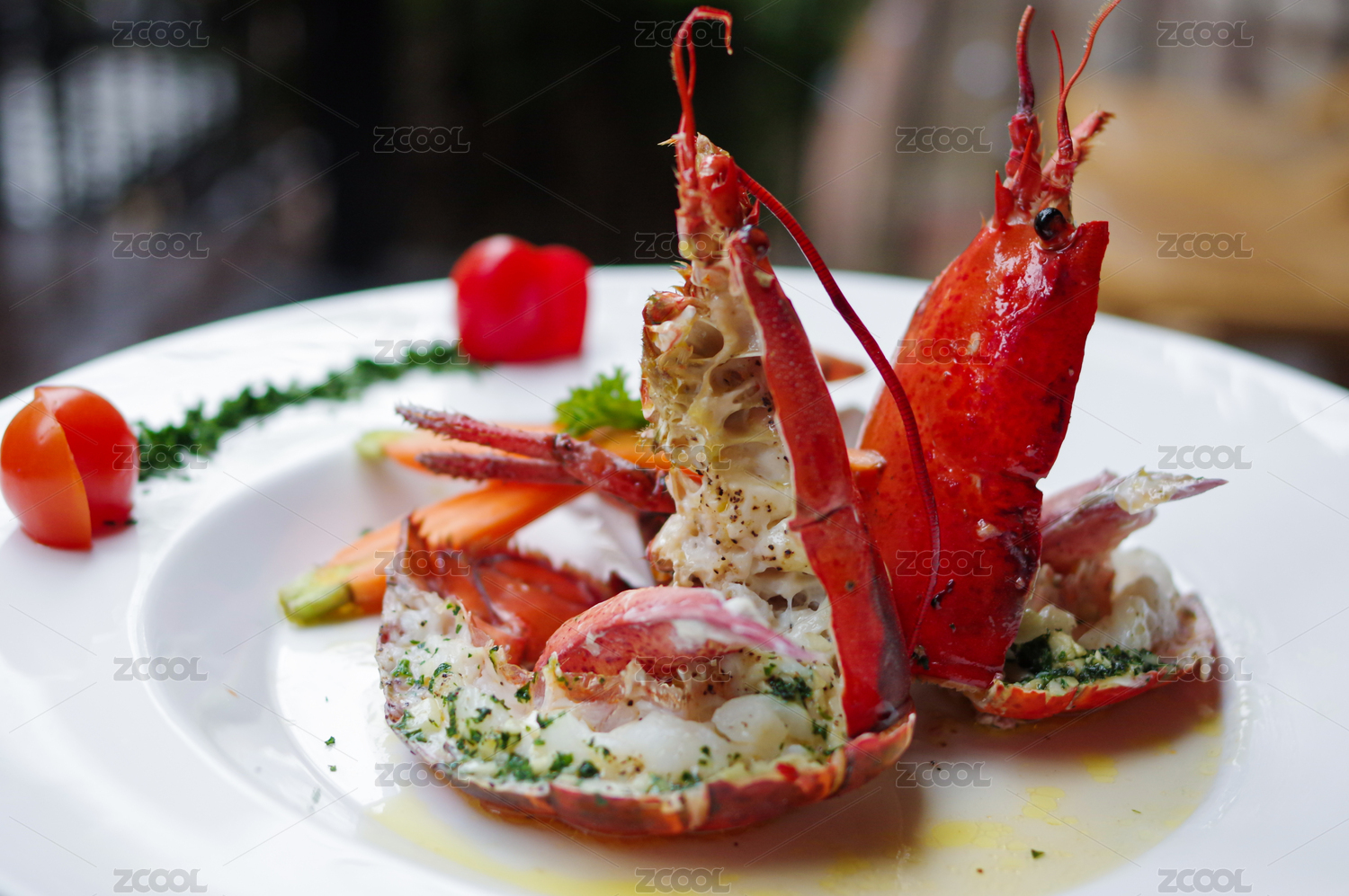 多汁波士顿龙虾配罗勒粉小番茄特写