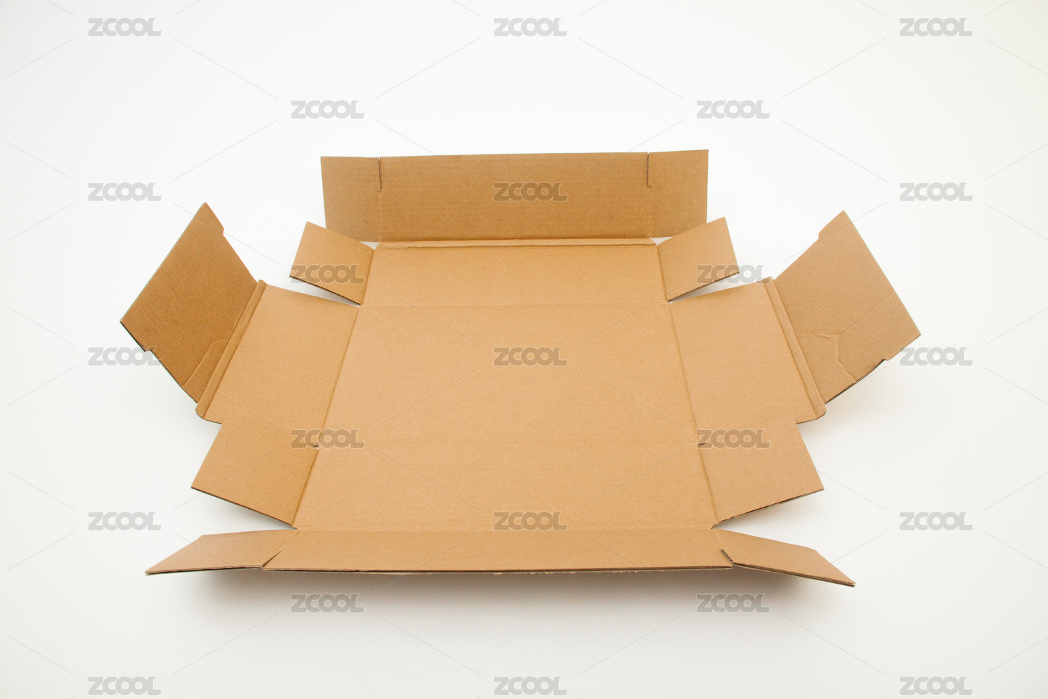 白色背景上一个打开的棕色纸箱