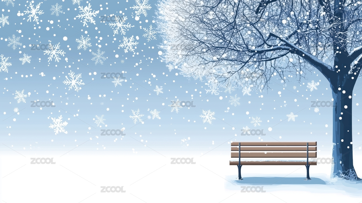 树木,风景,宁静,温暖,冬天,公园,落雪,雪景,长椅,景色