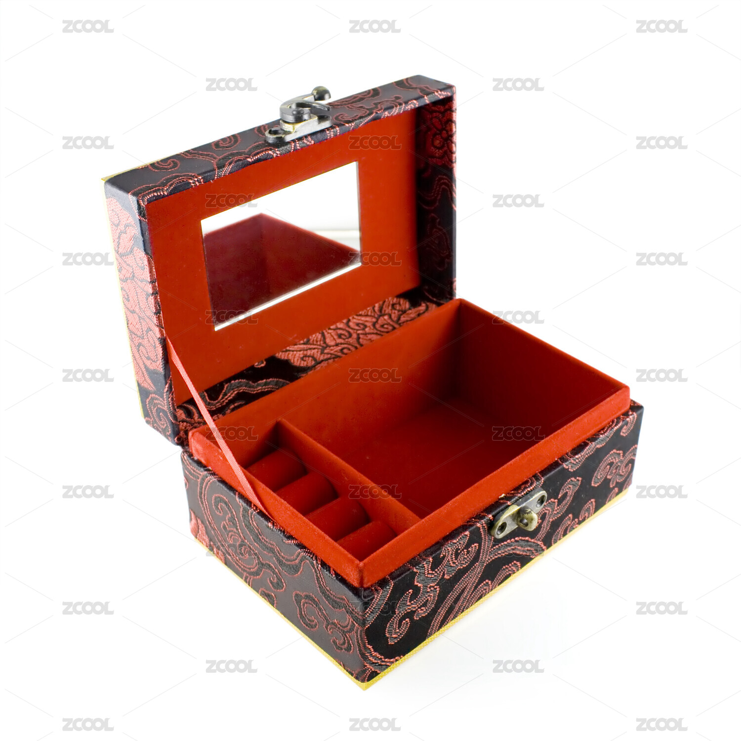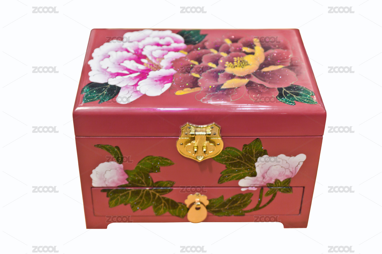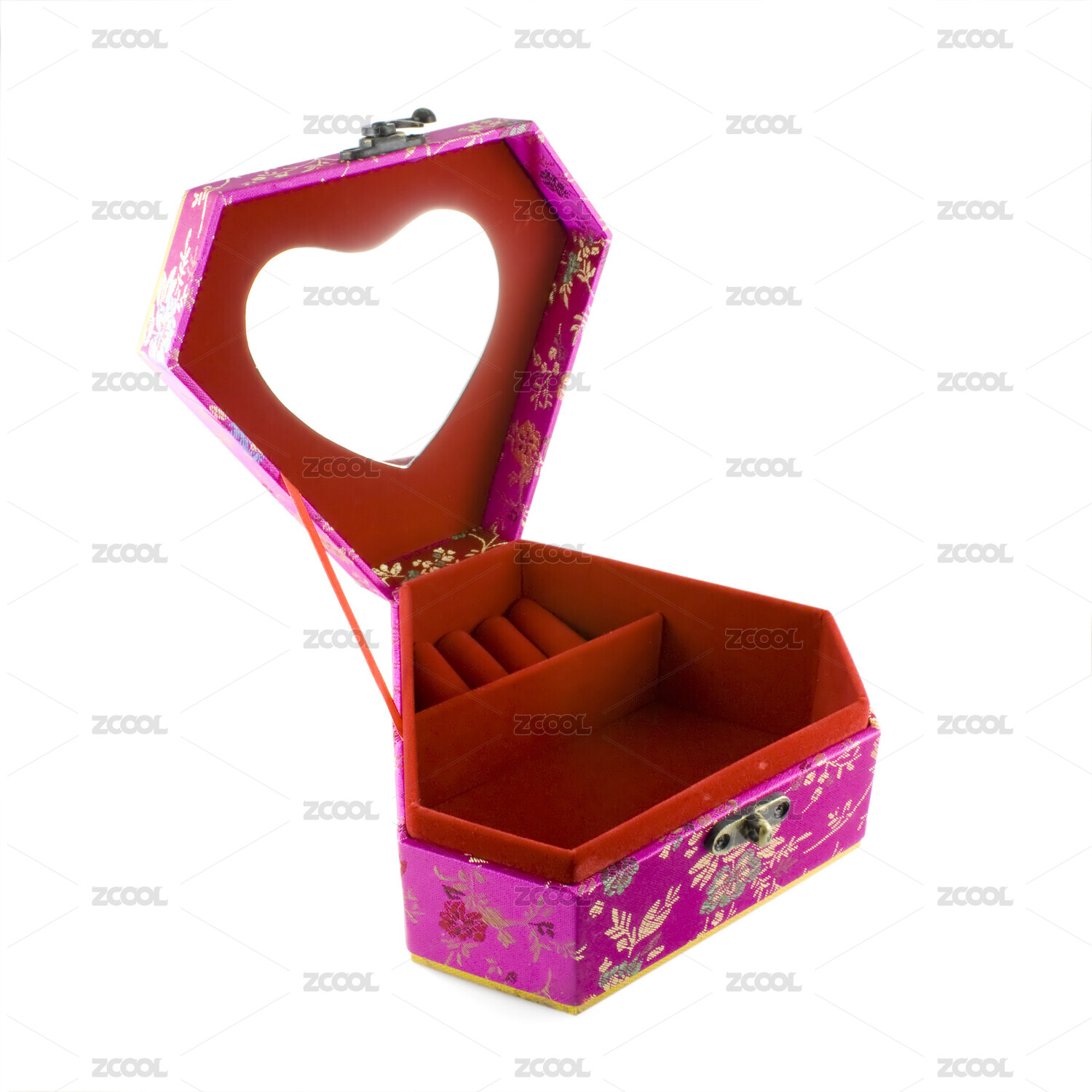 首饰盒,珠宝盒,精品盒,化装盒,白底,缎面,绫形,花纹,玫红色