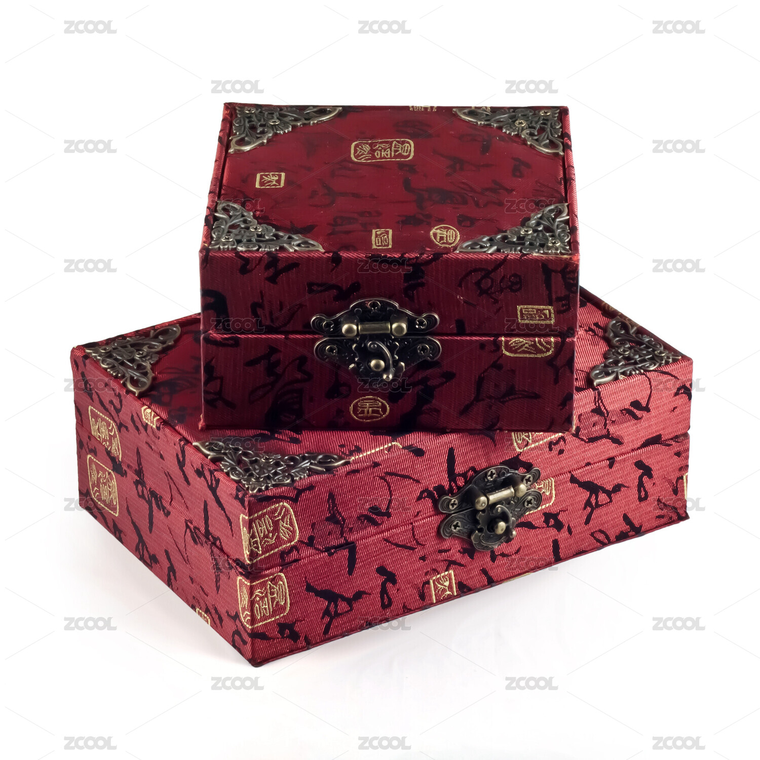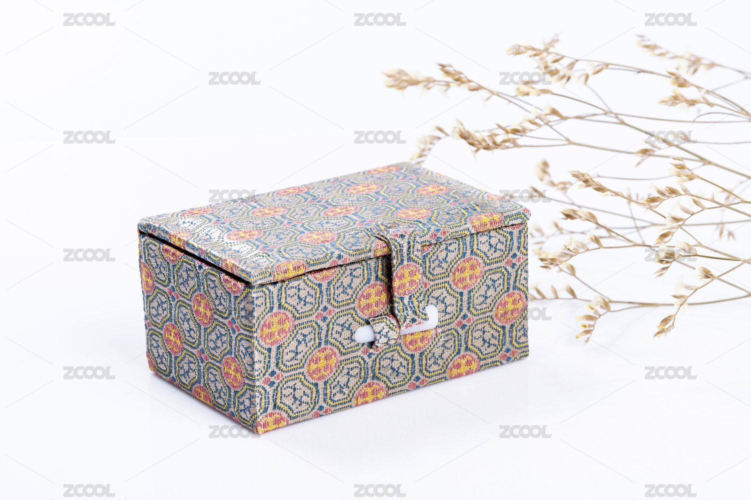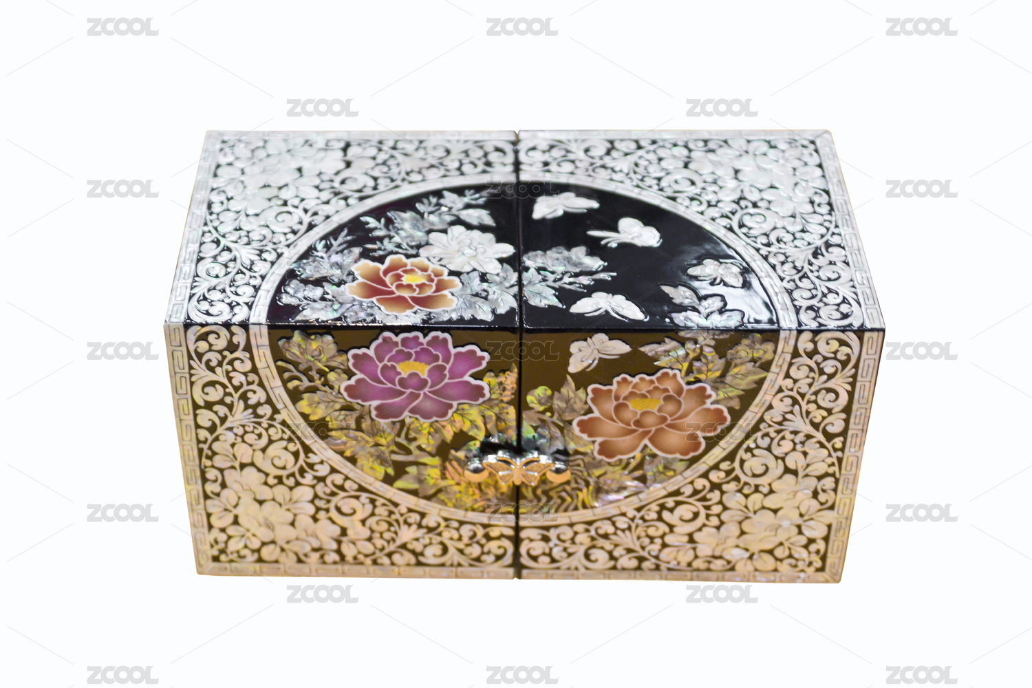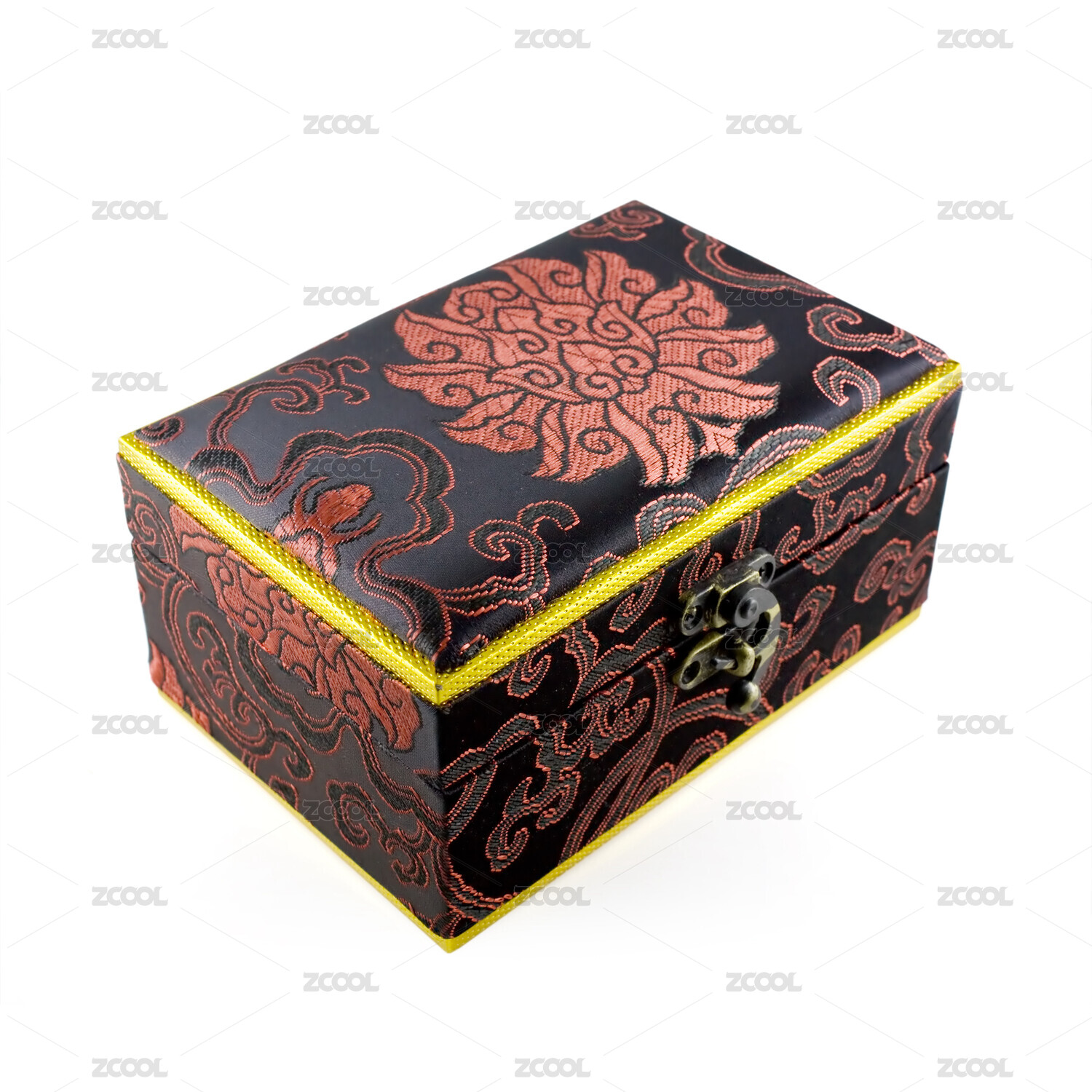 首饰盒,珠宝盒,精品盒,化装盒,白底,缎面,绫形,花纹,玫红色