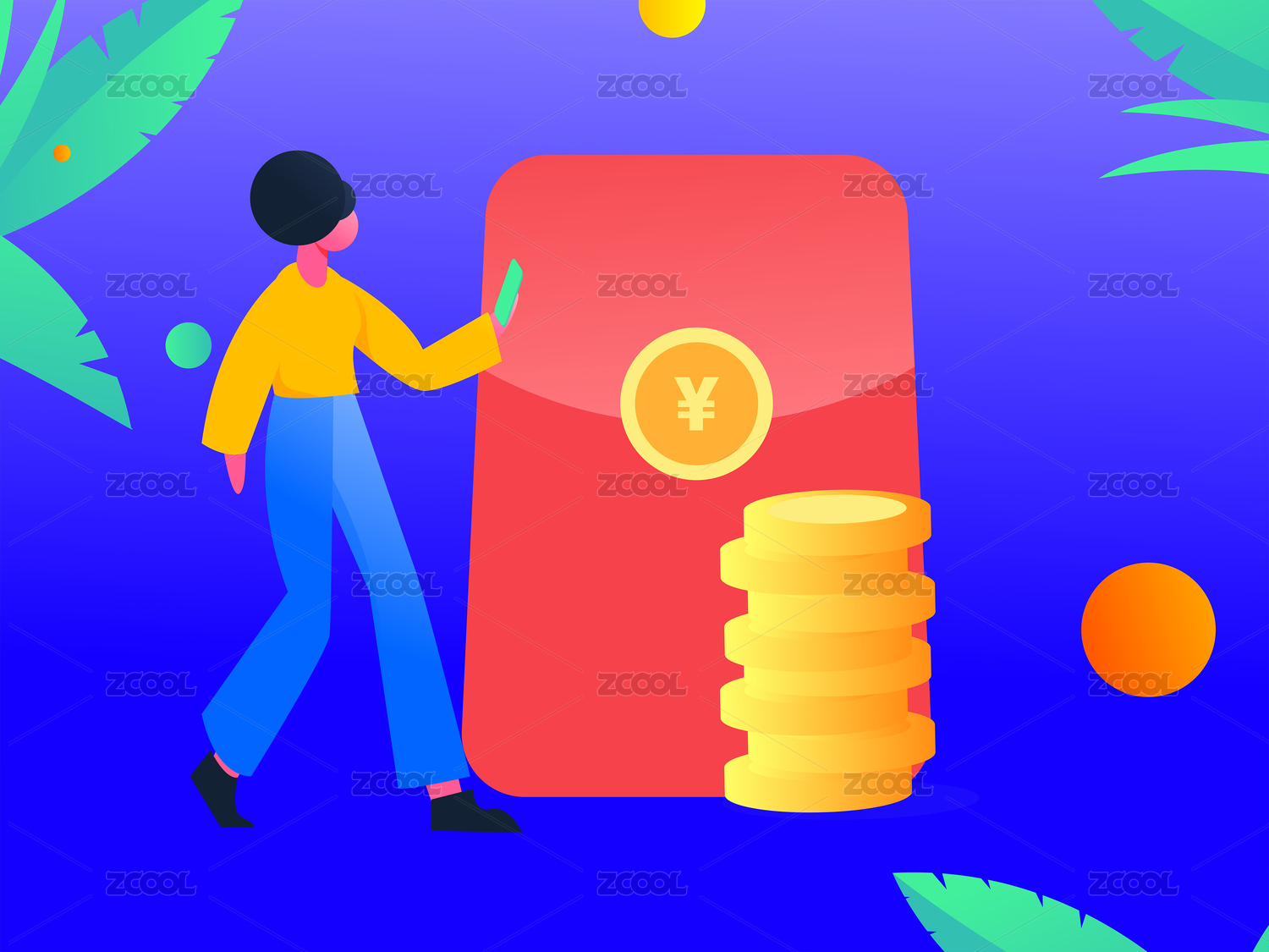 金融理财购物红包金币活动抽奖奖品商务插画