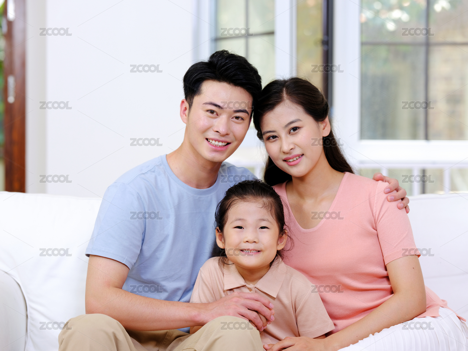 一家三口在家休闲生活肖像