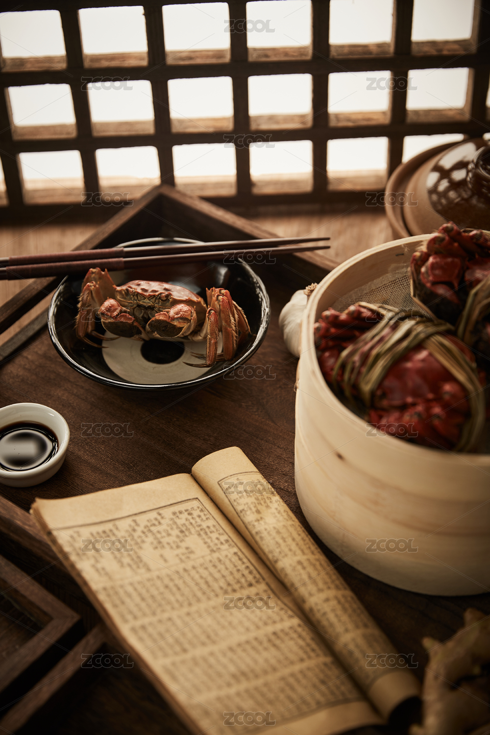 螃蟹,蒸笼,大闸蟹,食品,美食,中式食品,水产,海鲜,木托盘,窗口