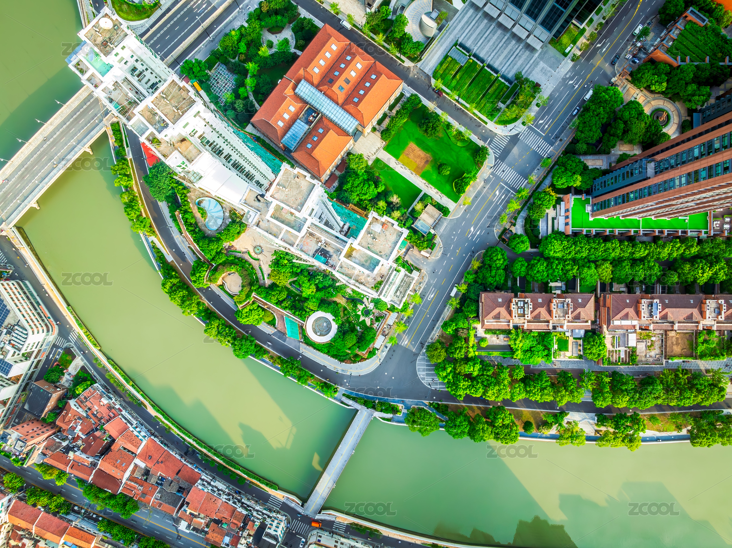 浙江义乌城市交通地标篁园大桥俯拍航拍