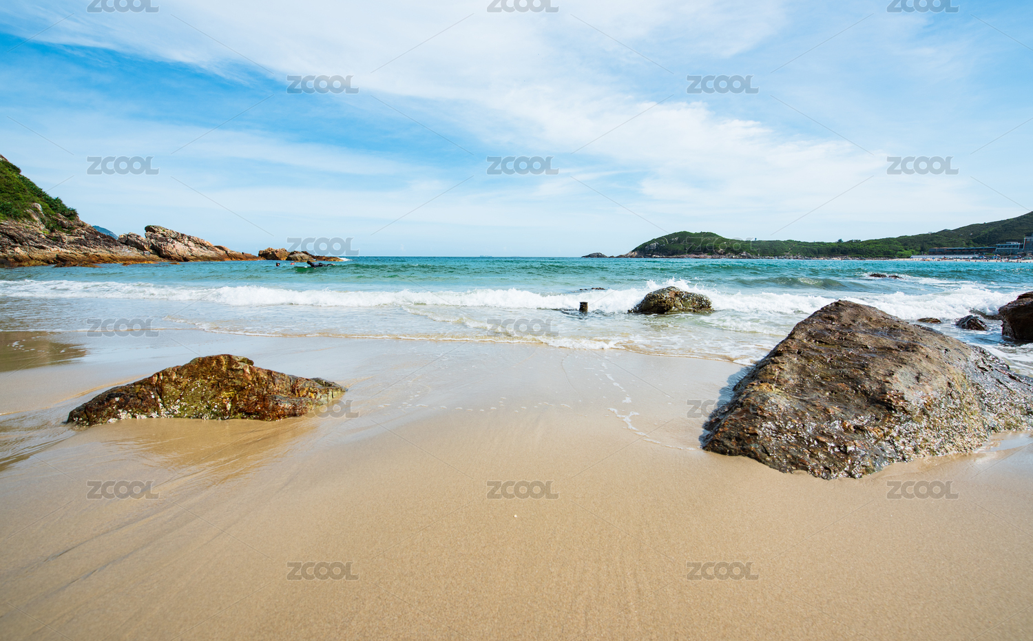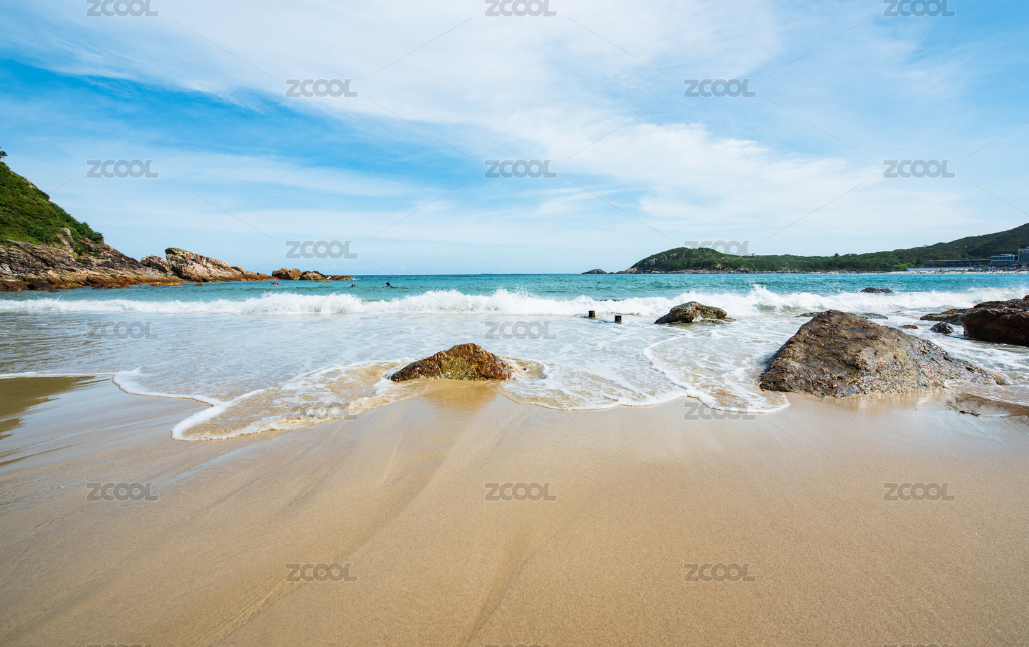 中国深圳东涌海岸夏日海浪与蓝天白云